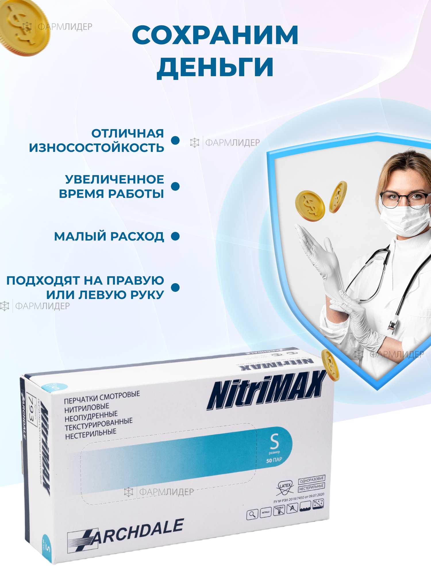 NITRIMAX перчатки одноразовые нитриловые голубые, 50 пар, размер S интересное: