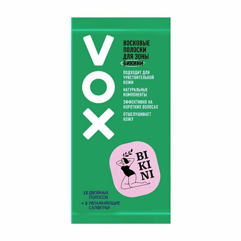 Купить Полоски восковые для депиляции бикини VOX GREEN 12 шт + 2 салфетки