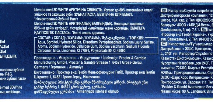 СохранитьЗубная паста Blend-a-med 3D White Арктическая Свежесть для безопасного отбеливания и свежего дыхания, 100 мл, 125 г интересное: