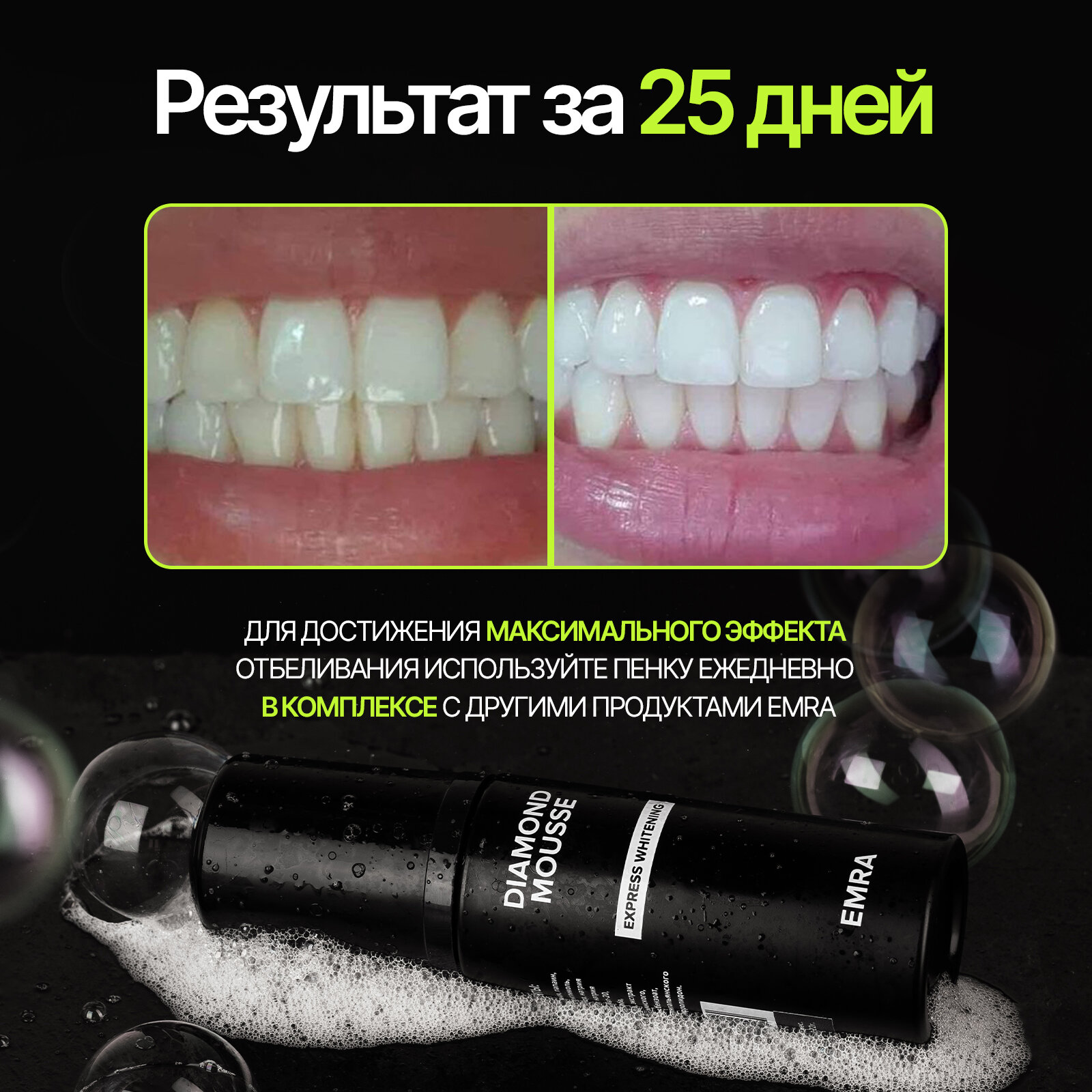 Отбеливающая пенка для полости рта Diamond Mousse от EMRA