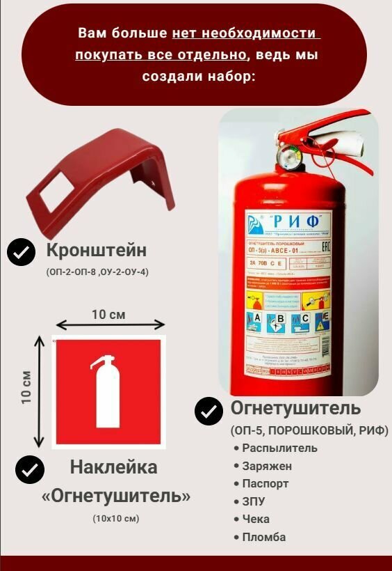 Набор из огнетушителя ОП-5 ABCE ЗПУ РИФ, кронштейна универсального и наклейки F04 "Огнетушитель" 100х100 мм интересное: