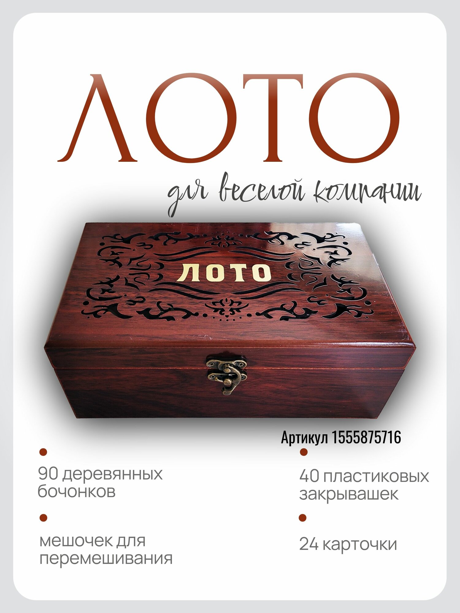 Русское лото в стильной сувенирной шкатулке под красное дерево с резной крышкой