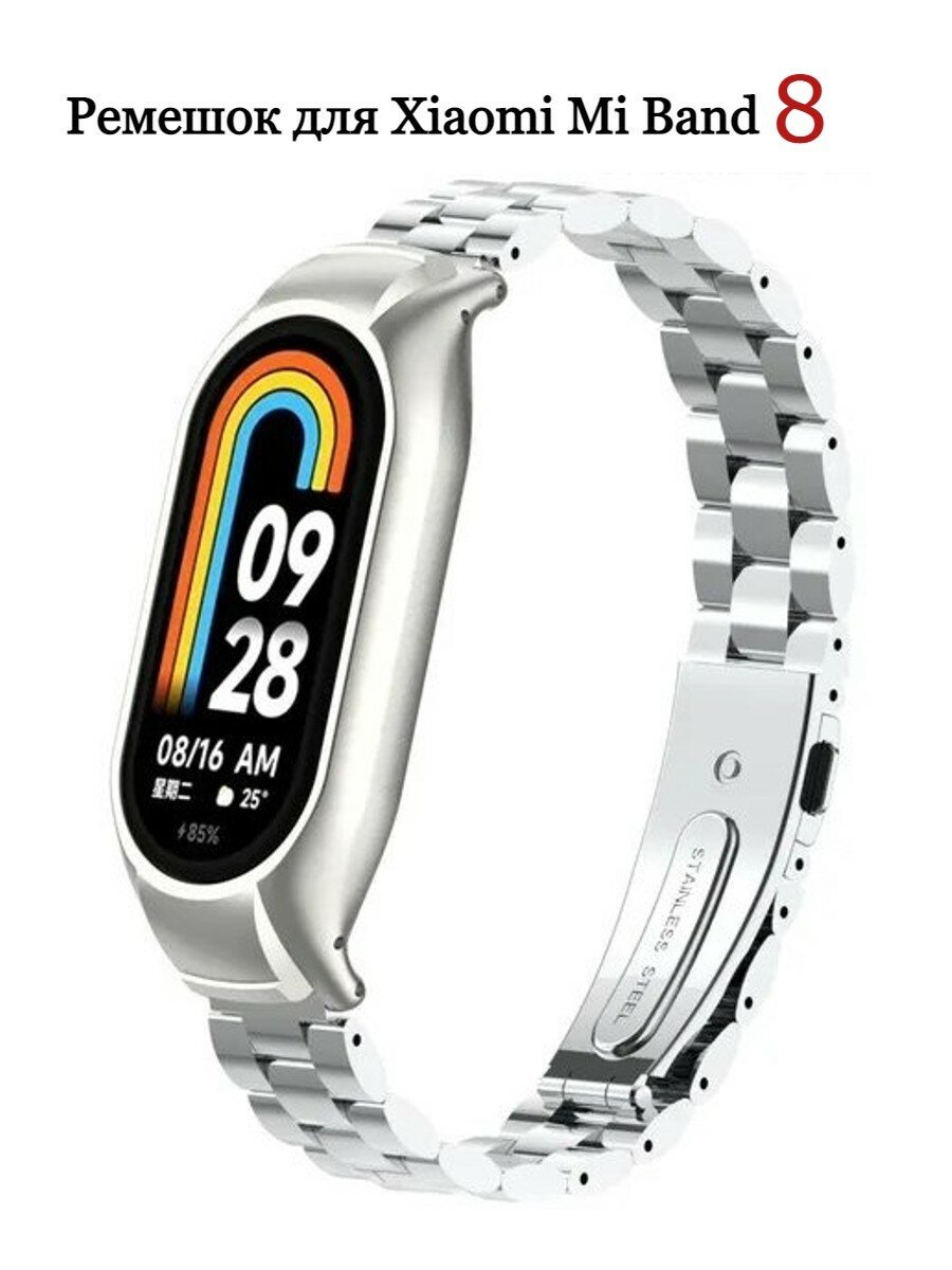 Ремешок металлический для Xiaomi Mi Band 8, серебристый