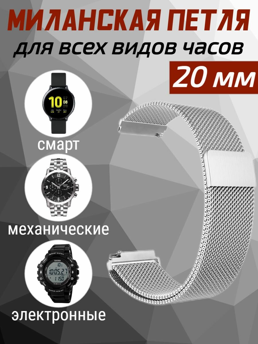 Ремешок миланская петля для Xiaomi Amazfit Samsung Huawei Honor Magic Watch 20 мм