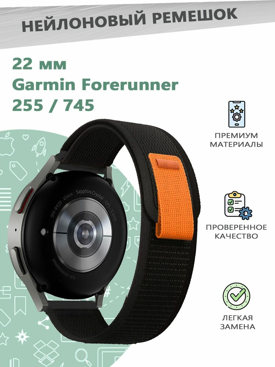Нейлоновый ремешок 22 мм для смарт часов Garmin Forerunner 255 / 745. - черный интересное: