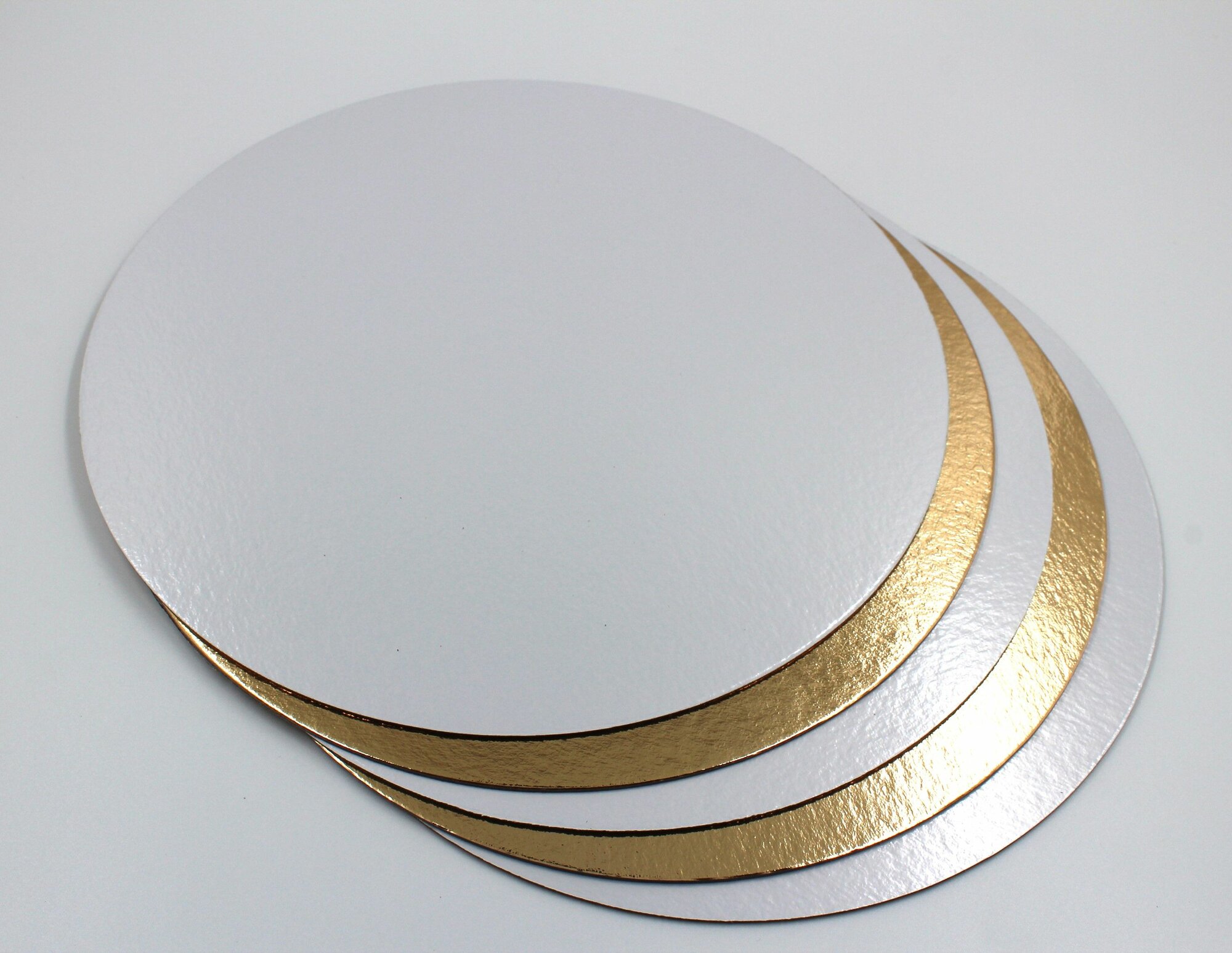 Купить Подложка d 26см, h 1.5мм, 5шт, золото/белый жемчуг, двусторонняя для торта, пирожных, десертов / кондитерская круглая, усиленная крепкая 26 см