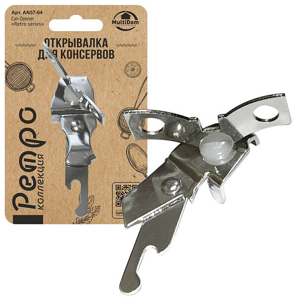 Открывалка для консервов и бутылок "Ретро", компактный 9x6x3.5см, нержавеющая сталь