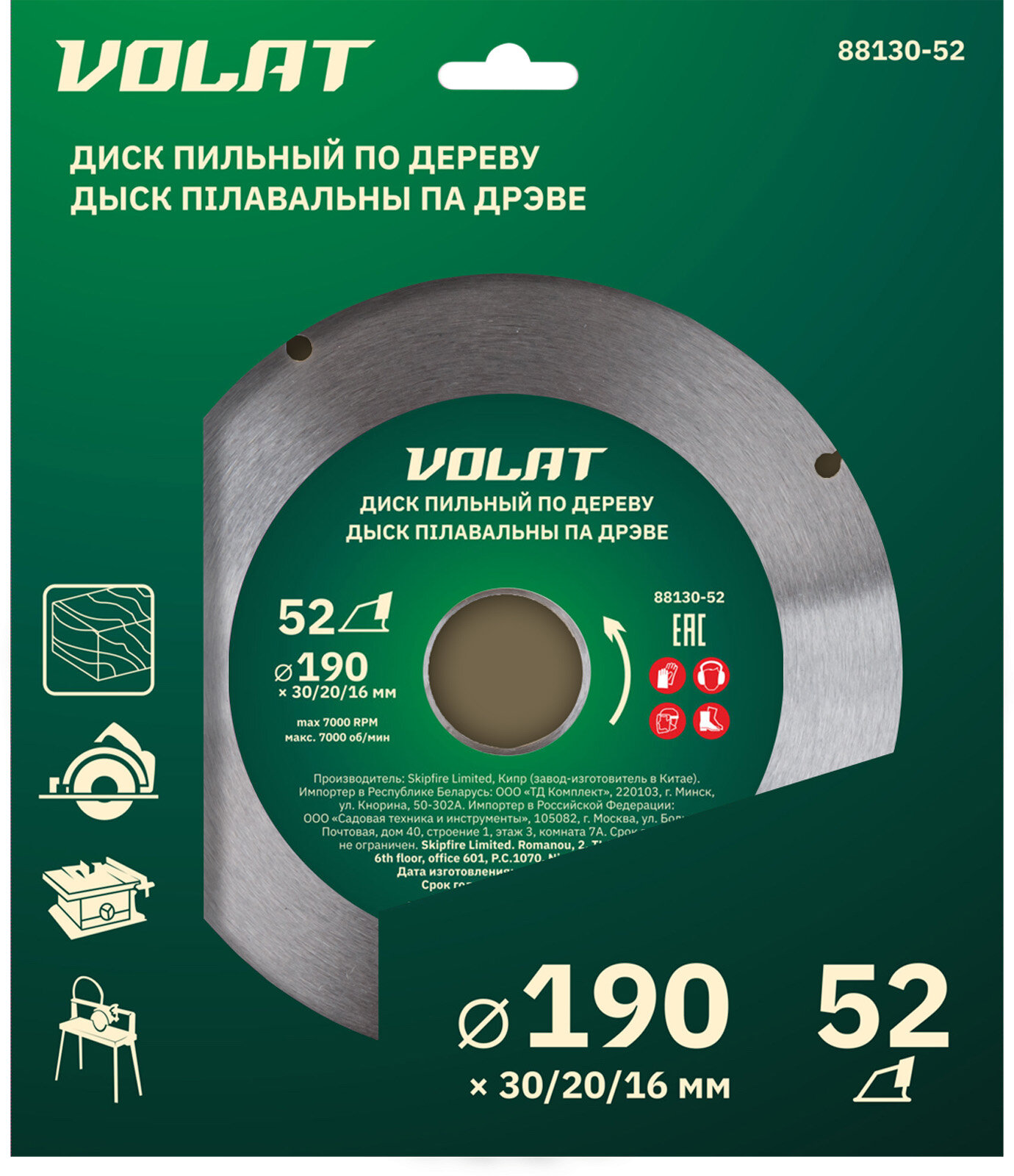 СохранитьДиск пильный 190х30/20/16 мм 52 зуба волат по дереву (88130-52) интересное: