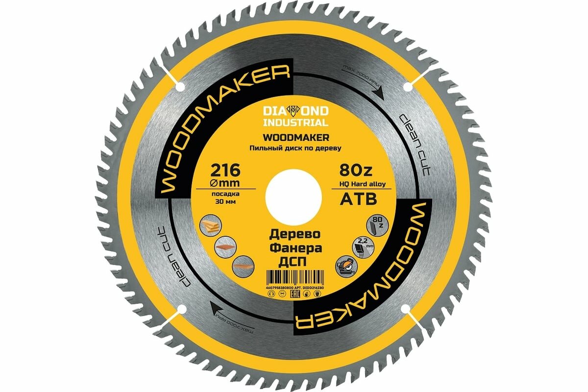 Купить Diamond Industrial Диск пильный по дереву 216x30 мм Z=80 ATB WoodMaker DIDD216Z80