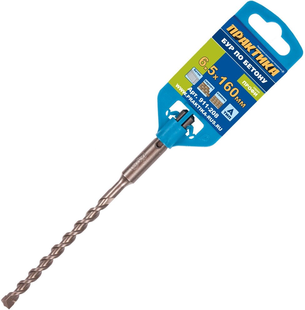 Бур SDS-plus ПРАКТИКА 6,5 х 150/210 мм серия "Профи" по бетону (911-215)