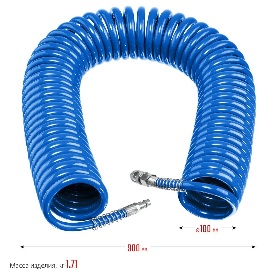 ЗУБР 10 м, 8х12 мм, 15 бар, Воздушный спиральный шланг с фитингами рапид, Профессионал (6472-10) (6472-10)
