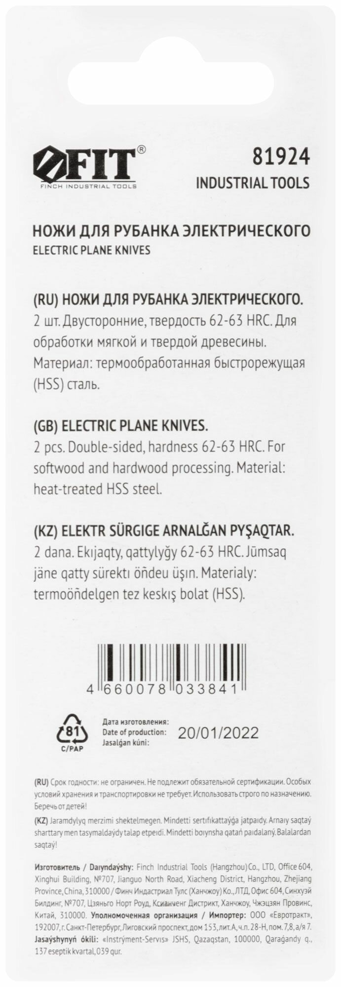 FIT Ножи для рубанка 82 х 5,5 х 1,15 мм двусторонние, набор 2 шт, HSS сталь HRC 62-63 интересное: