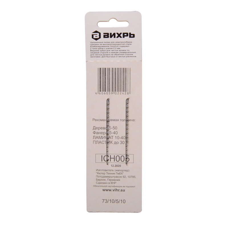 | Дополнительная информация | Пилка для лобзика по дереву и ламинату Вихрь Т308В чистый рез, 2 шт. |