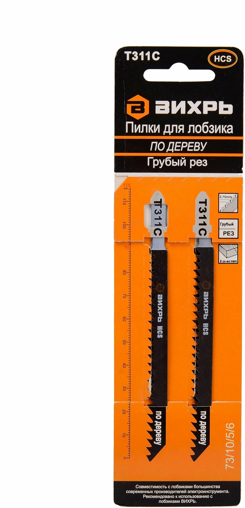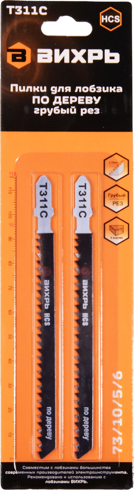Вихрь Пилки для лобзика Т311C по дереву,грубый рез 116х100мм 2 шт 73/10/5/6