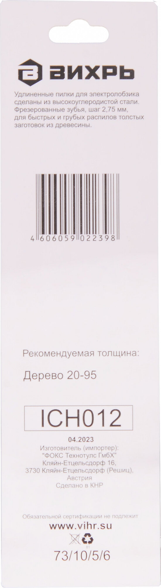 Набор пилок для электролобзика вихрь Т311C (73/10/5/6) 2 шт.