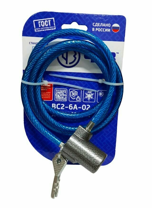Замок велосипедный тросовый, ЧАЗ, ВС-2-.6А-02, 1260 мм, 000-02. СР. СБ интересное: