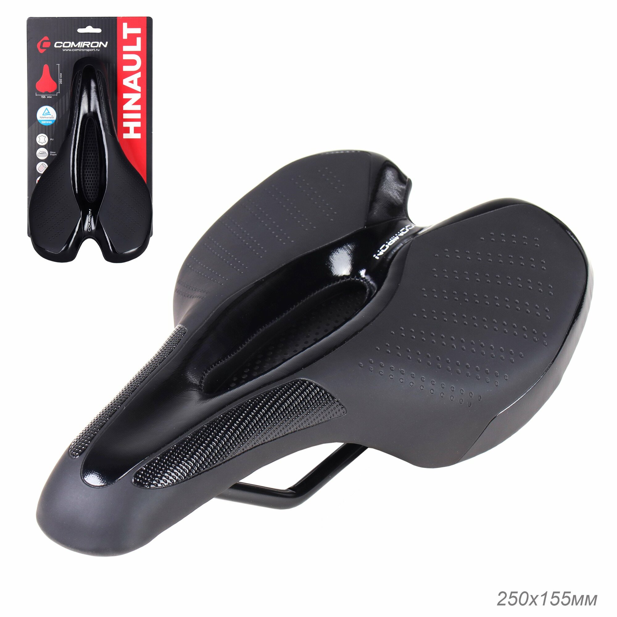 СохранитьСедло велосипедное MTB COMIRON HINAULT M039BK 250X155. Цвет: Чёрный интересное: