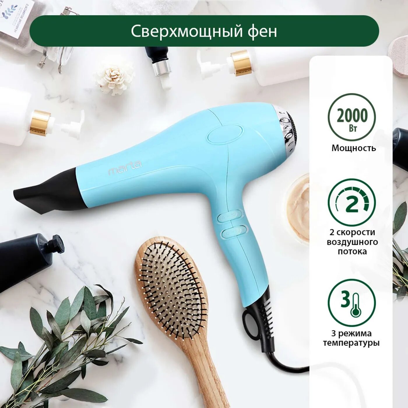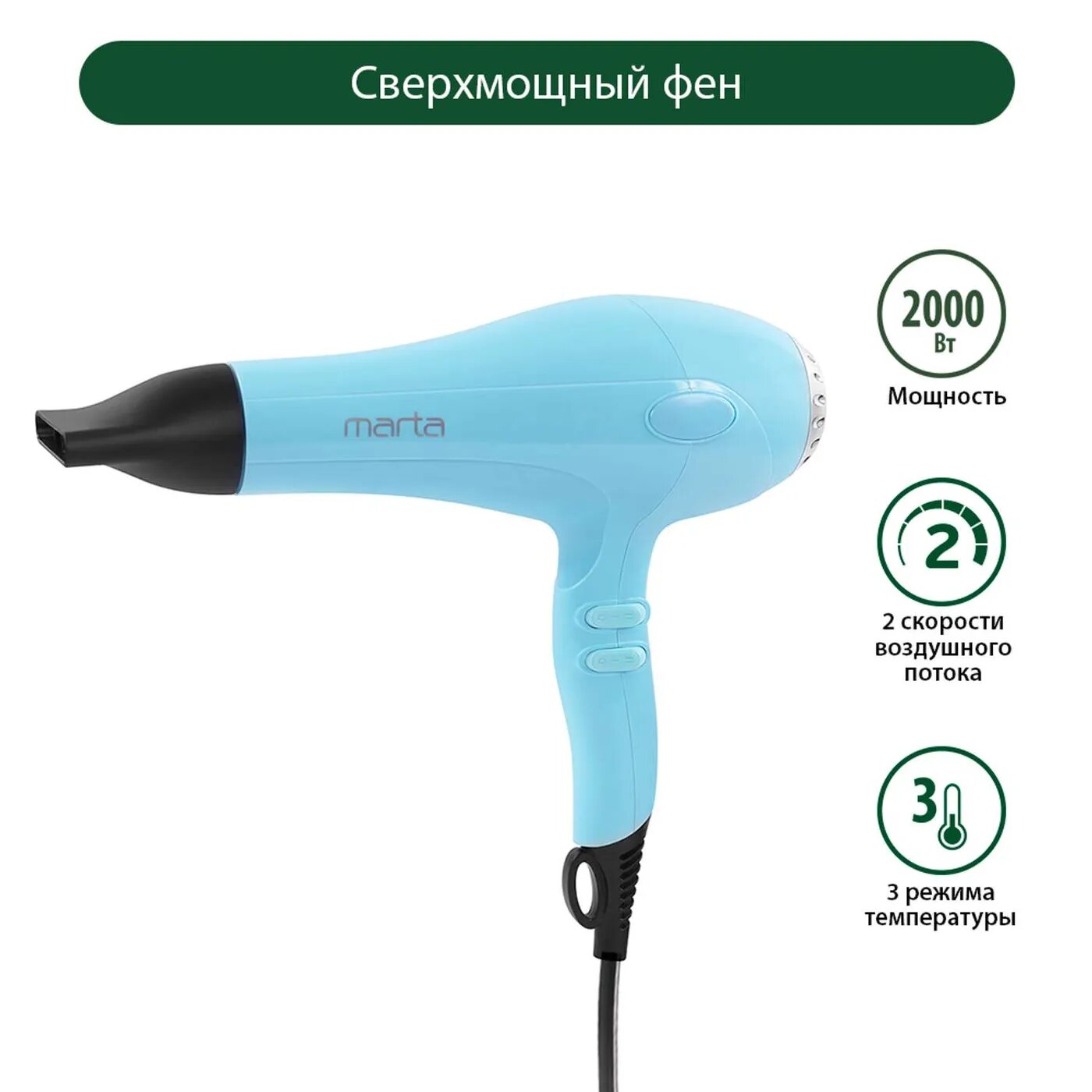 Marta MT-1492 ФенMAX 2000W 2 режима мощности, 3 температурных режима (холодный, теплый, горячий), ко .