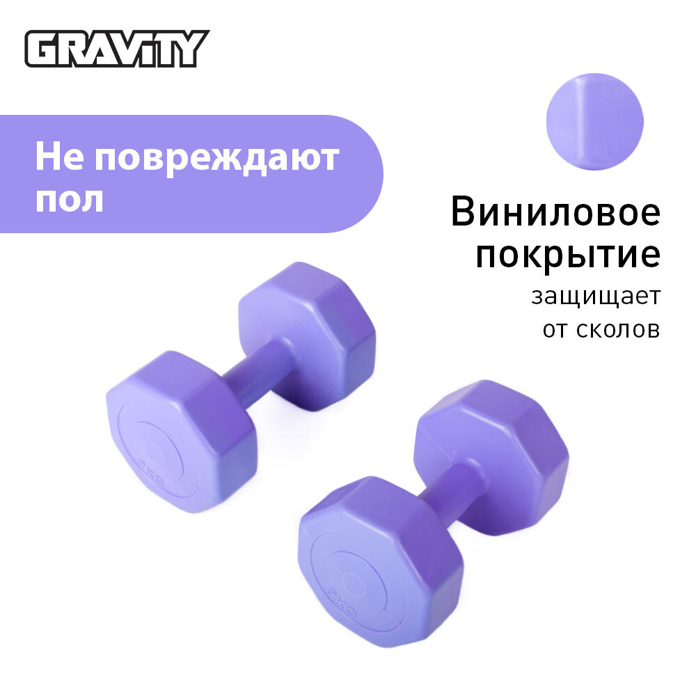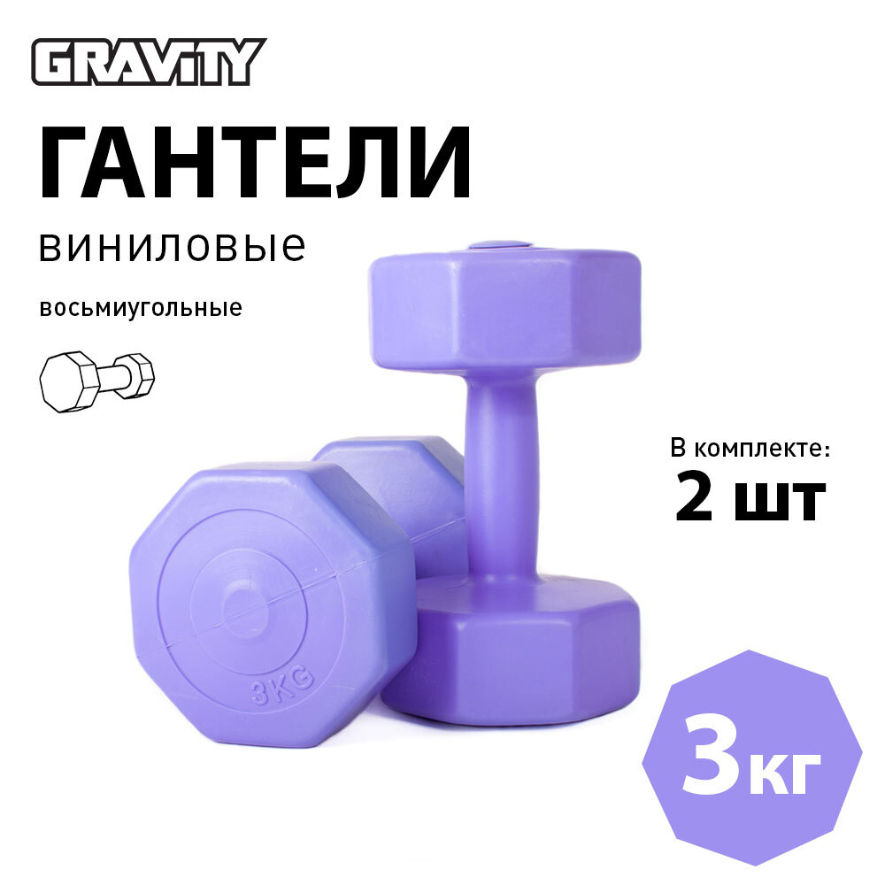 Купить Виниловые гантели Gravity, восьмиугольные, 3 кг, пара, сиреневый