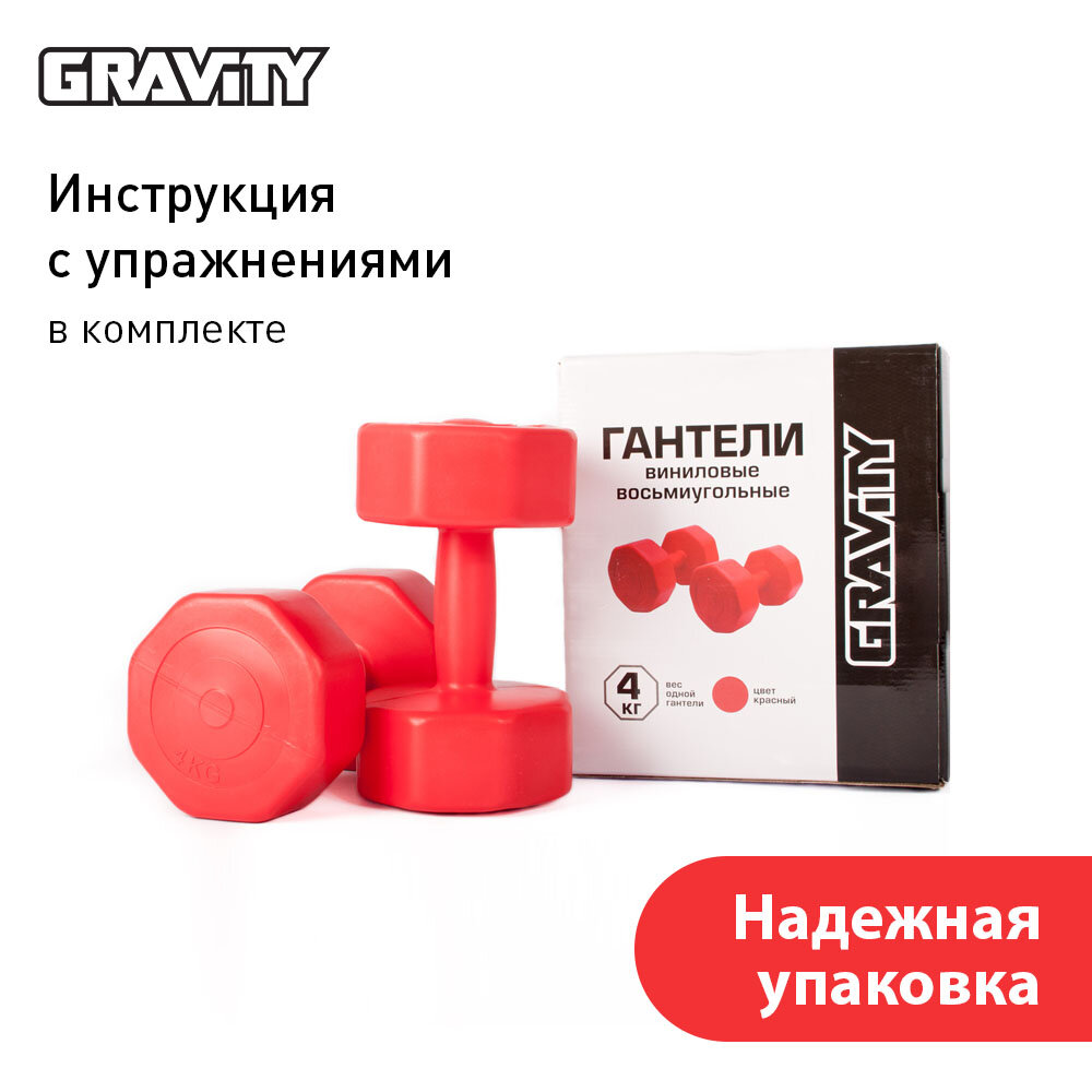 Виниловые гантели Gravity, восьмиугольные, 4 кг, пара, красный интересное: