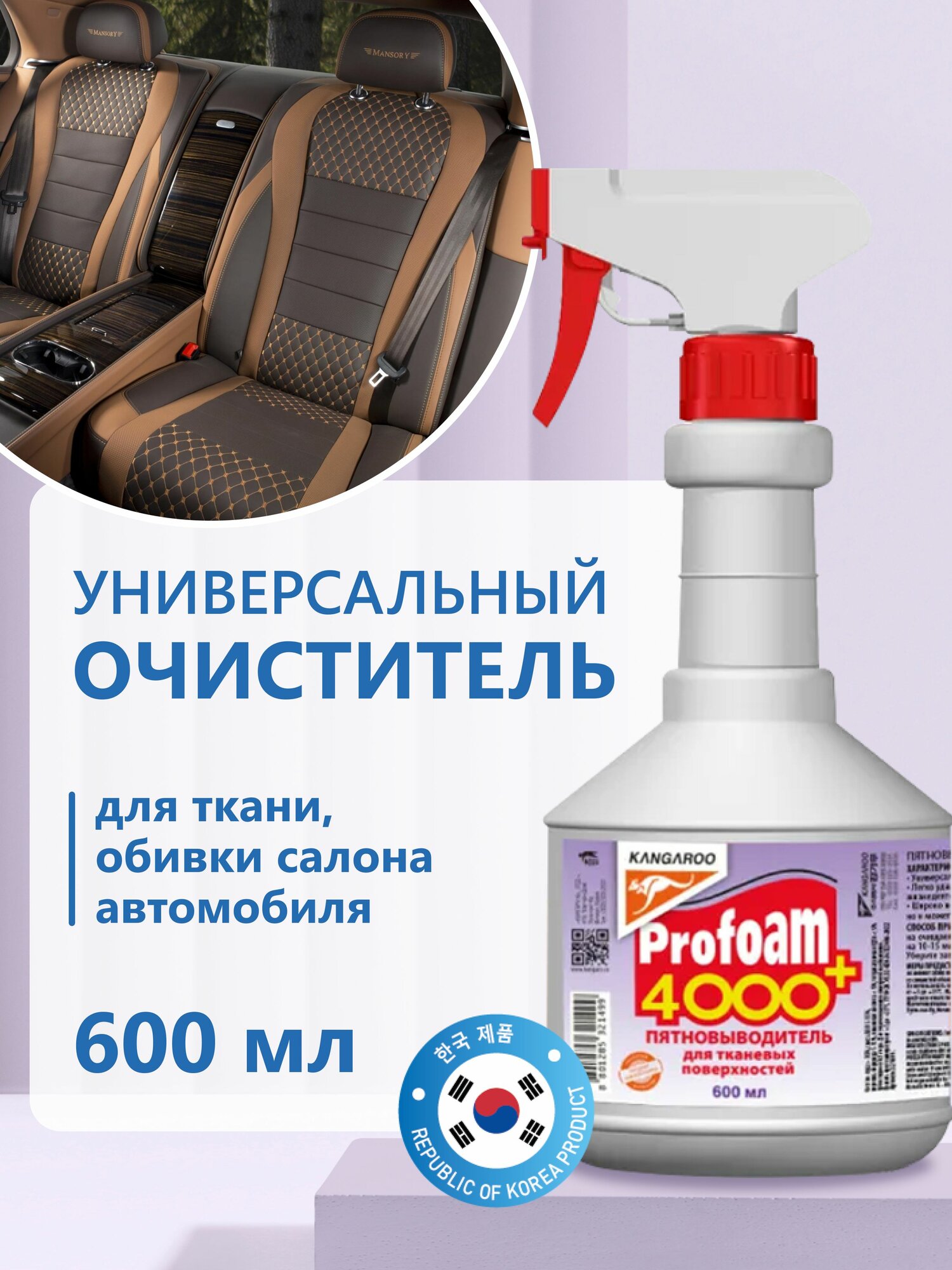 Очиститель Kangaroo Profoam 3000 для интерьера автомобиля, универсальный, 600мл