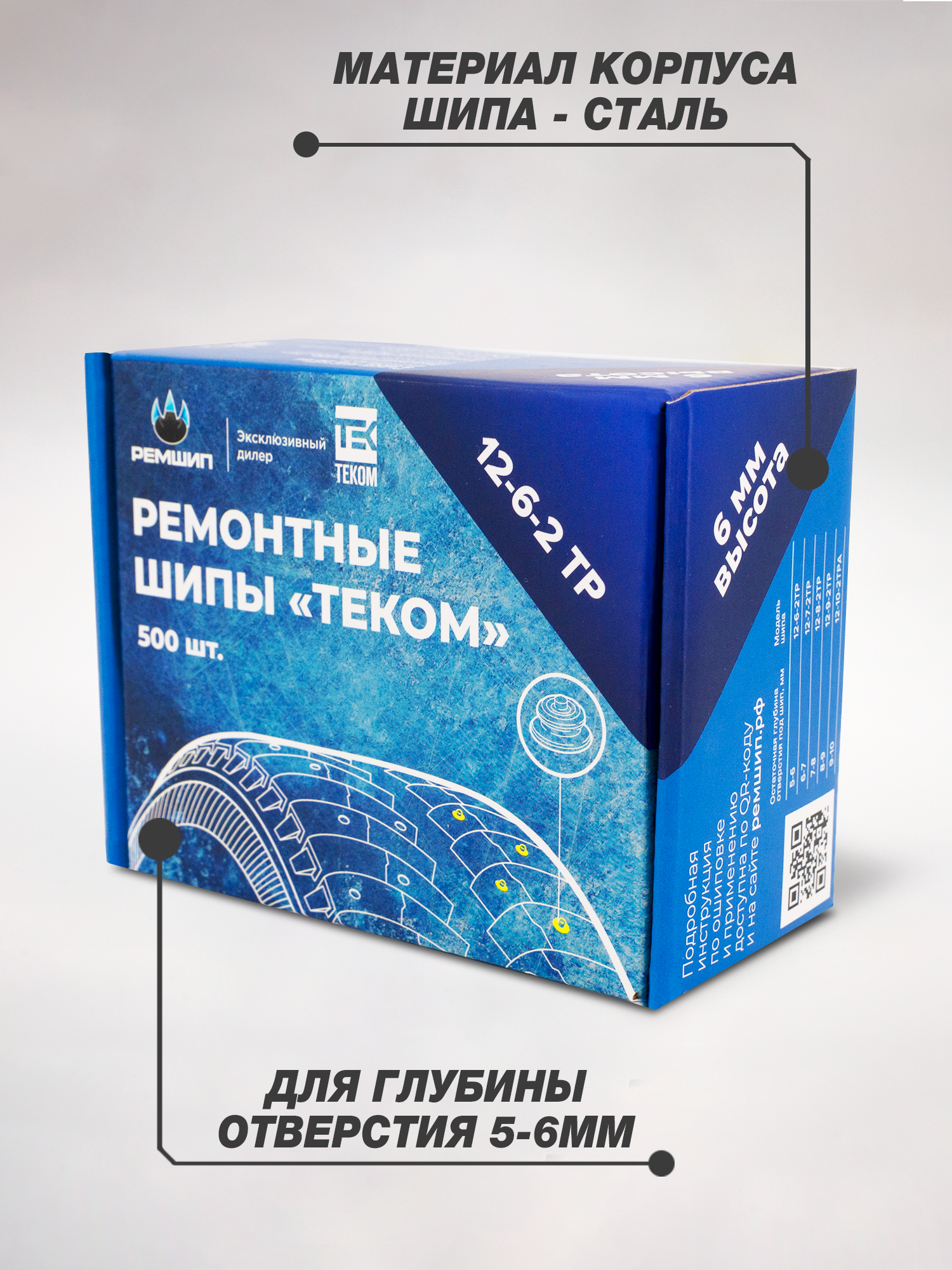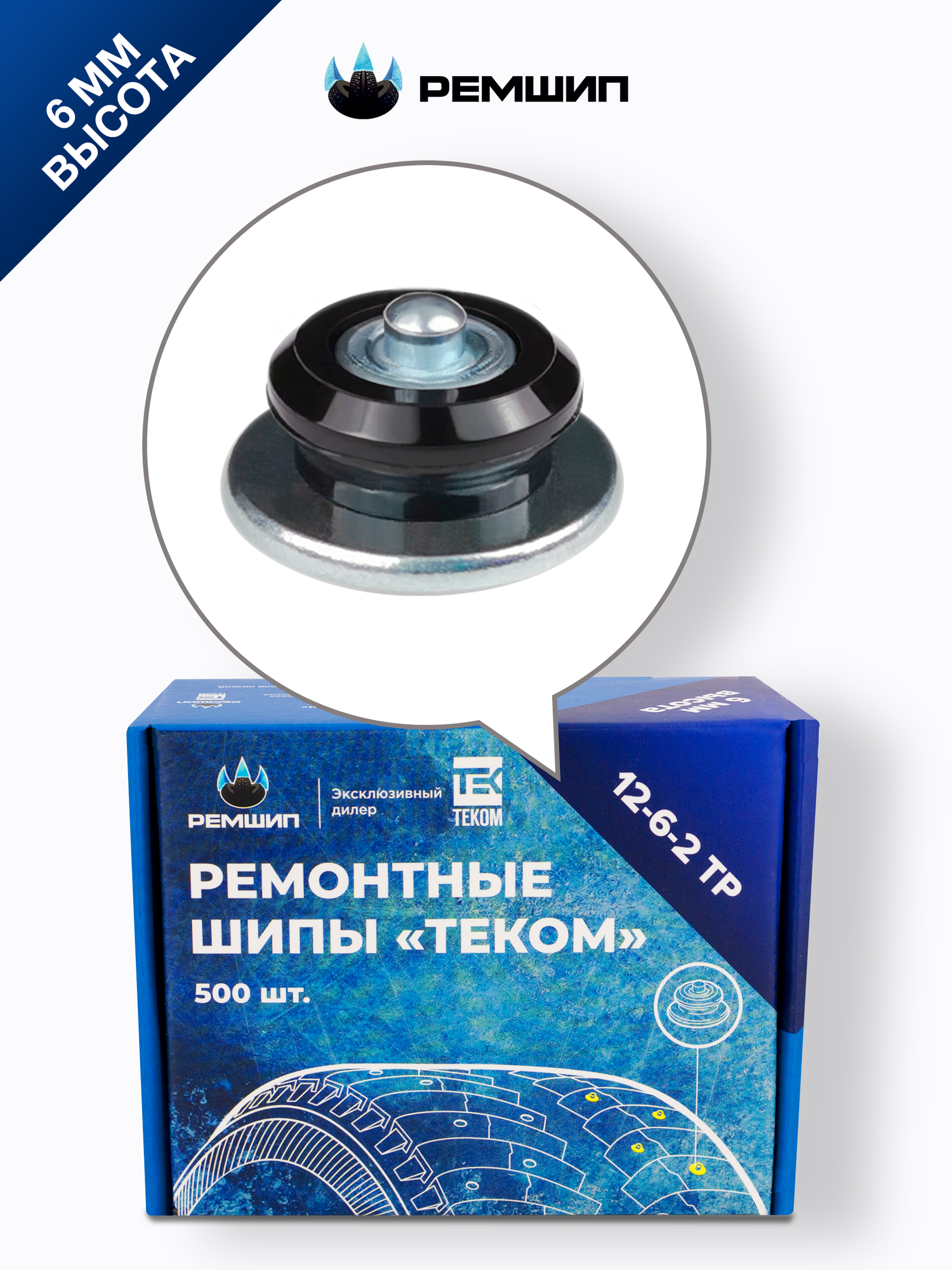 | Подробная комплектация | Ремонтные шипы 12-6-2ТР 500 шт. |