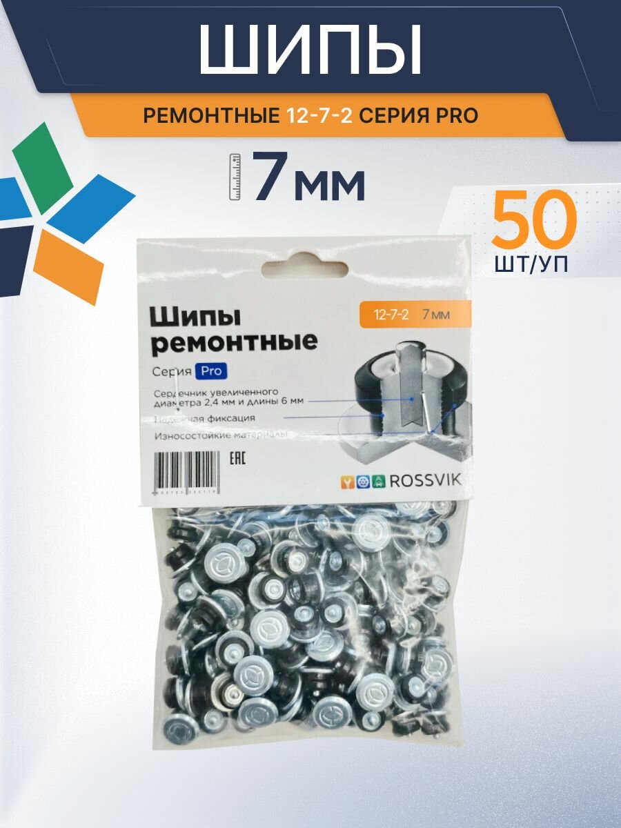 Купить ROSSVIK Шипы ремонтные 7мм 50шт 12-7-2 серия PRO / Ремонтные шипы 7мм Россвик