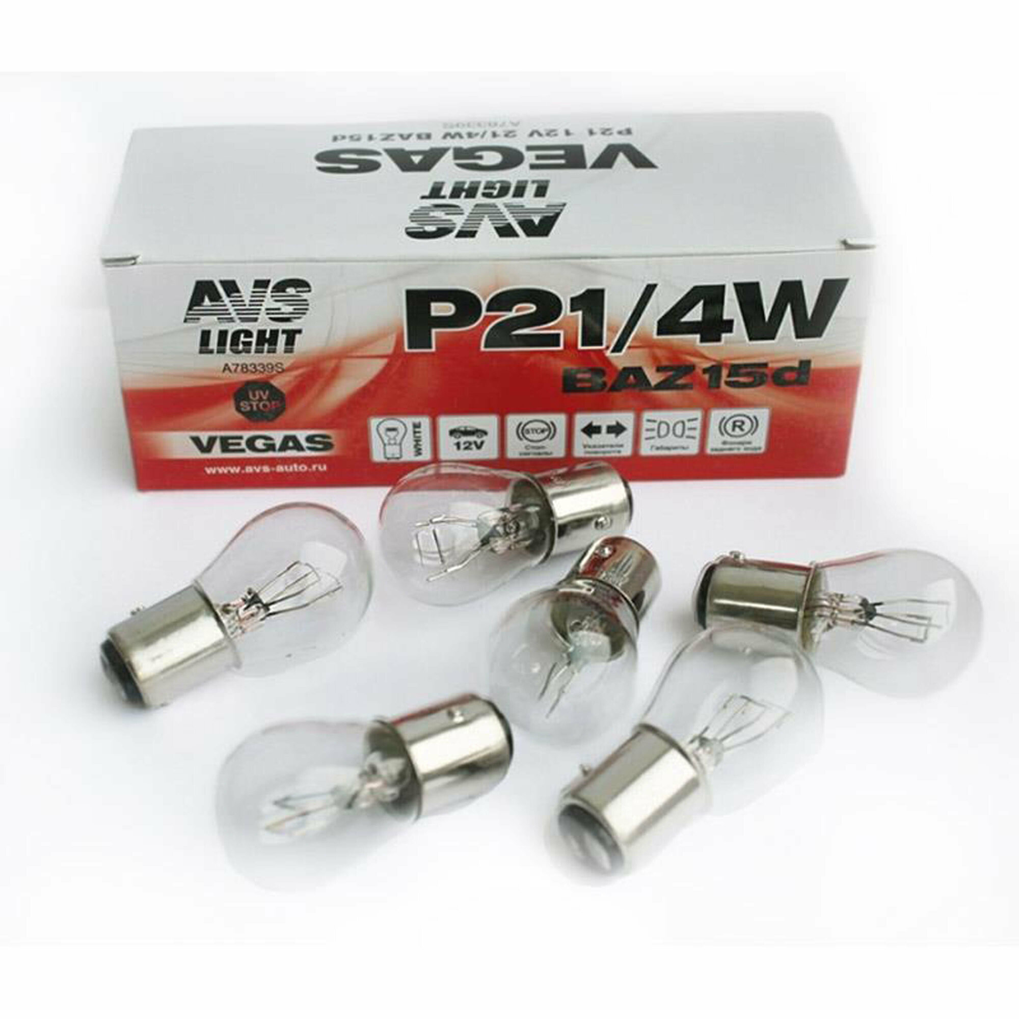 Лампа AVS Vegas 12V. P21W (BA15S) BOX (10 шт.)