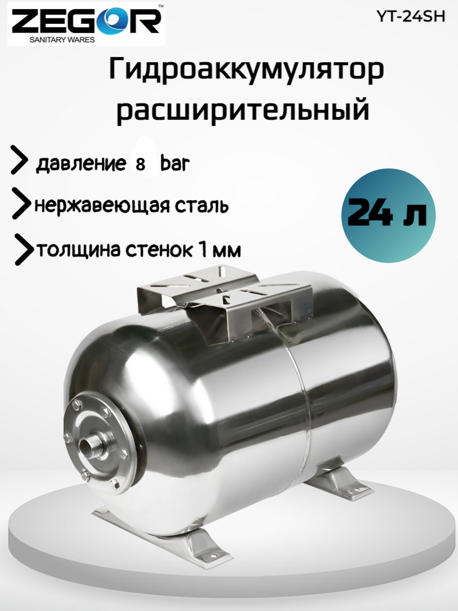 Гидроаккумулятор расширительный 24 литра, нерж сталь YT-24SH ZEGOR интересное: