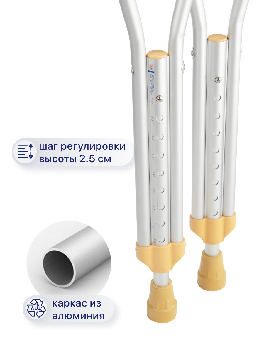Купить Костыли подмышечные U Standart, размер L: под рост 175-200 см, взрослые, подростковые, регулируемые по высоте (пара)