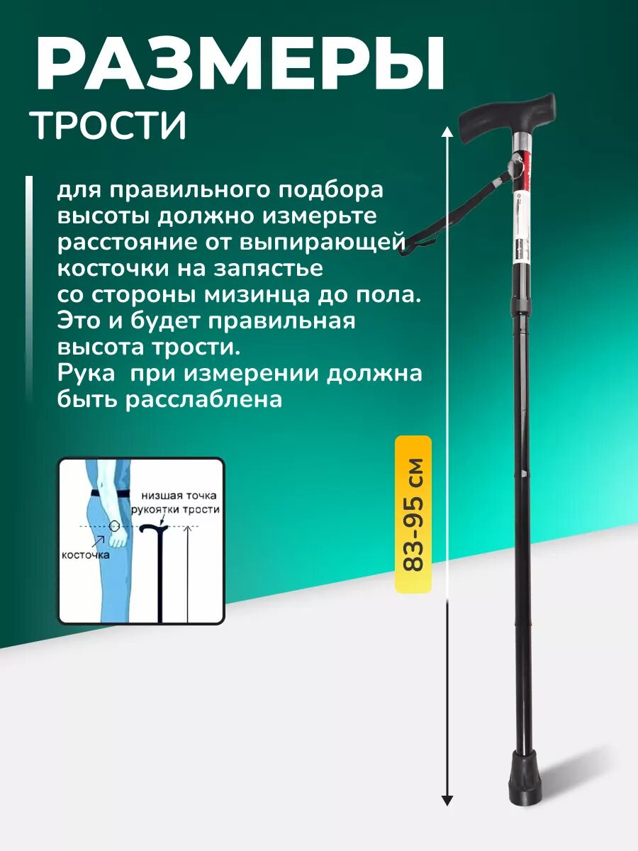 | Особенности трости | ортопедическая рукоятка / ремешок на кисть |