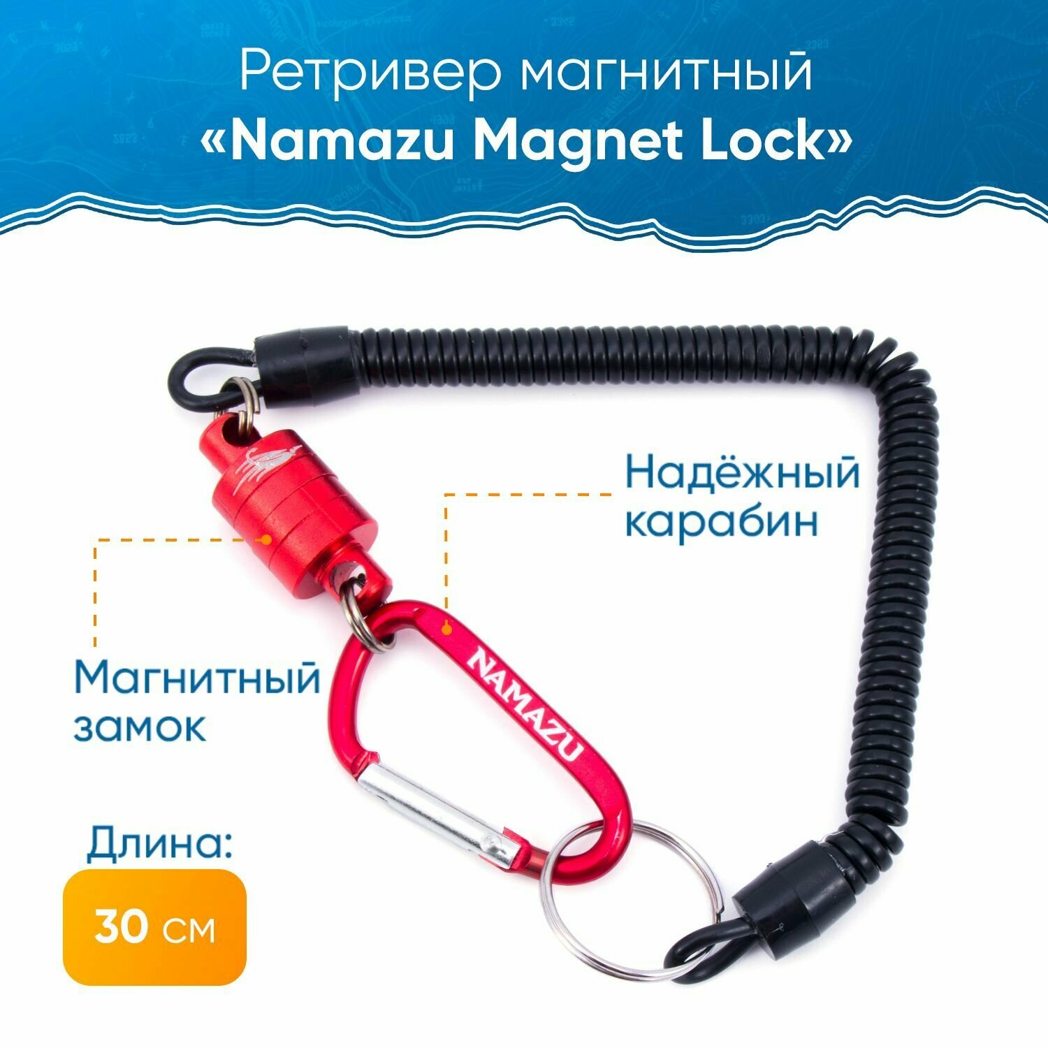 Ретривер Namazu Magnet Lock , с карабином, красный, металл, длина 30см интересное: