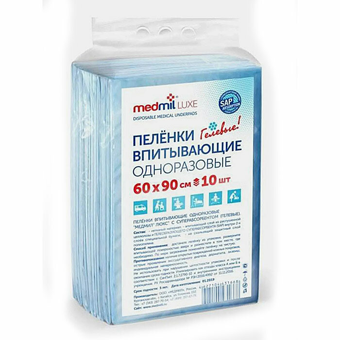 Купить Пеленки впитывающие одноразовые "Медмил" Люкс 60х90 (упа-ка 10шт)