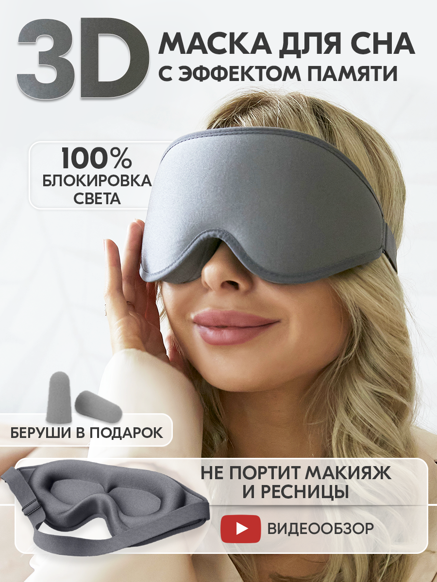 Маска для сна с эффектом памяти/ Очки, повязка женская + беруши в подарок