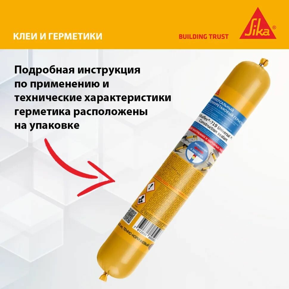 СохранитьПолиуретановый клей-герметик Sika Sikaflex-719 Universal PU темно-коричневый 600 мл / универсальный, высокоэластичный интересное: