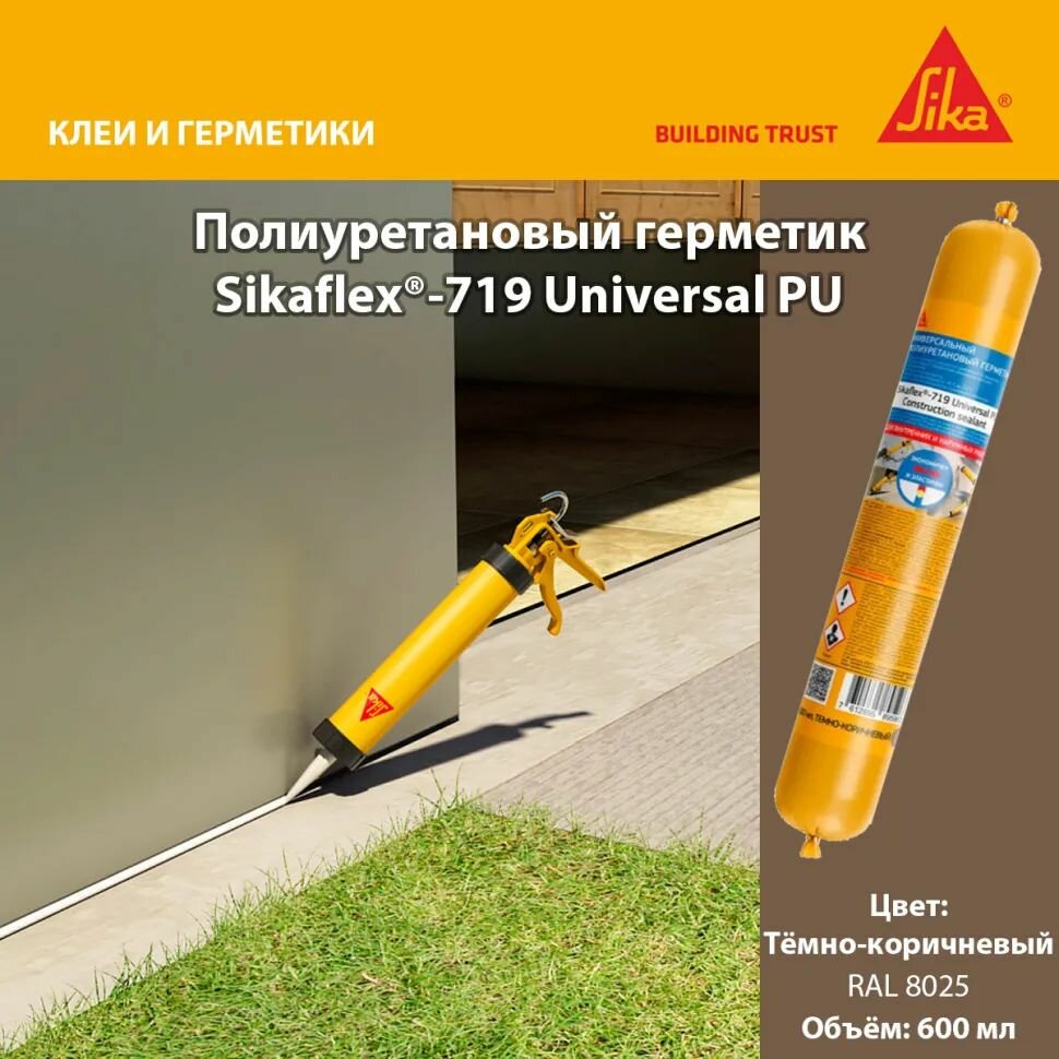 Полиуретановый эластичный универсальный герметик Sikaflex-719 Universal PU Construction, 300 мл, темно-коричневый