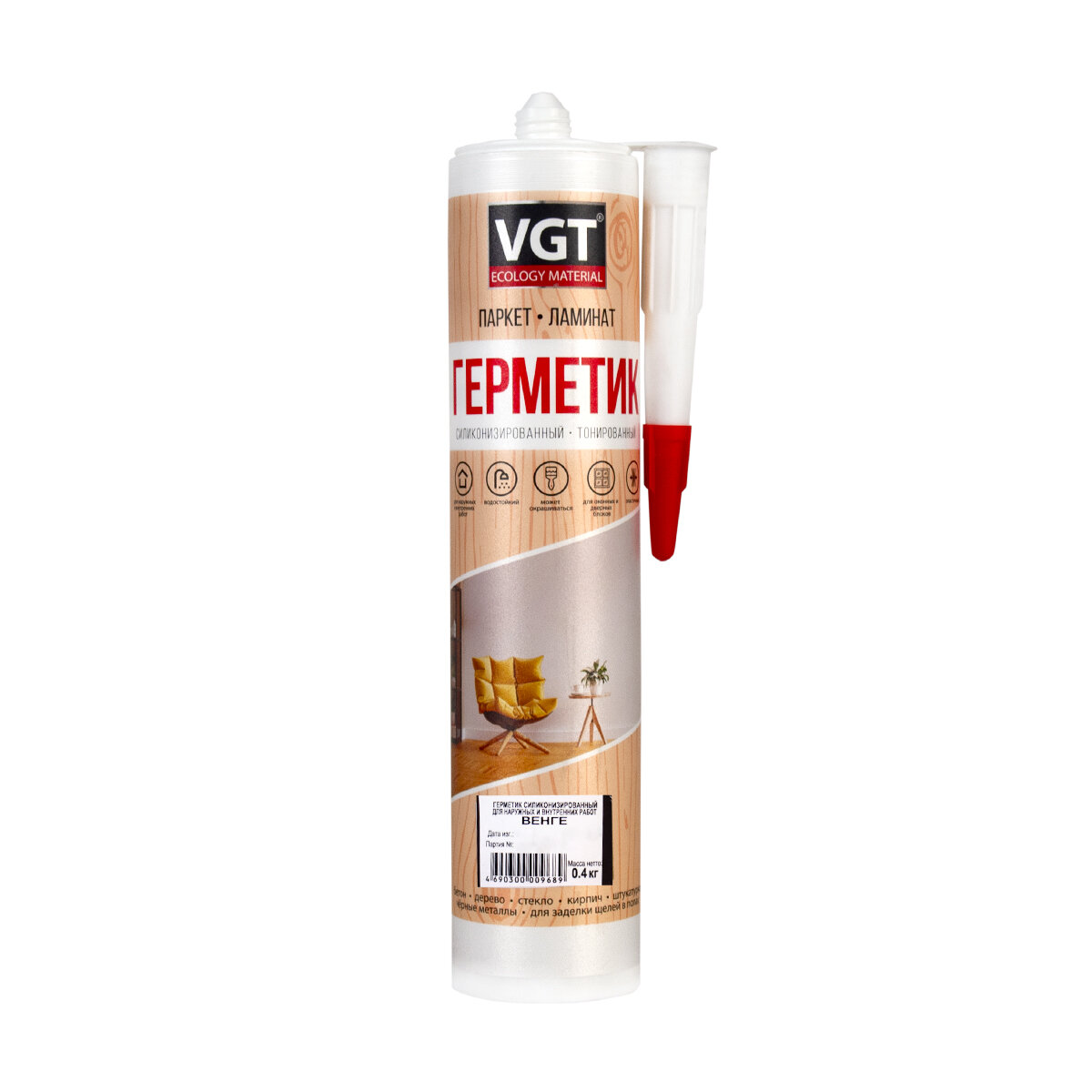 | Подробная комплектация | Герметик акриловый VGT силиконизированный для дерева 0,4кг бук, арт.12514 |
