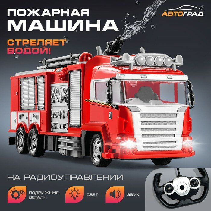 Машина радиоуправляемая Пожарная охрана , стреляет водой, световые эффекты, работает от аккумулятора интересное: