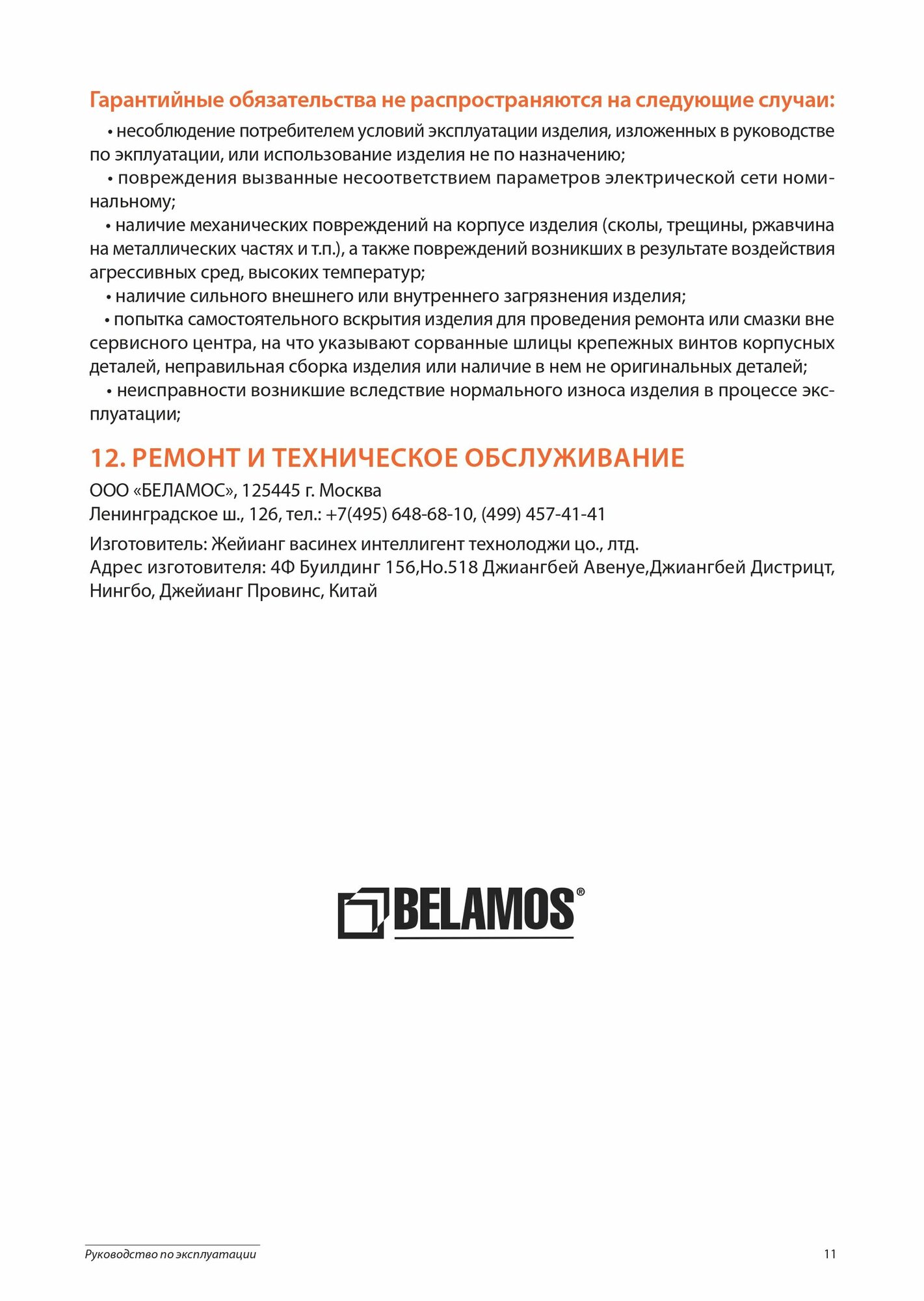 | Бренд | BELAMOS |