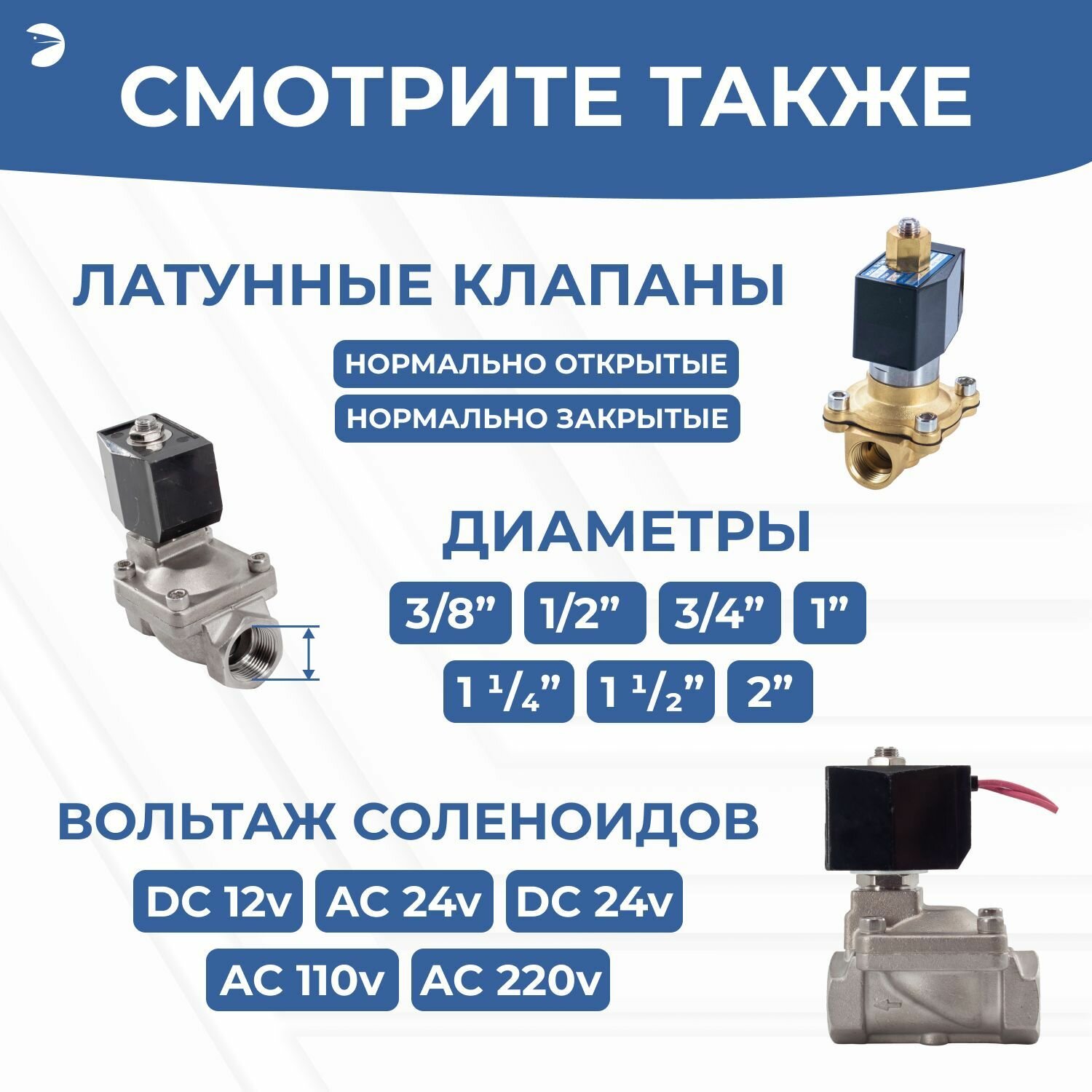 Клапан электромагнитный соленоидный нержавеющий, прямого действия, нормально закрытый 1/2" дюйма, PN10, 12DC интересное:
