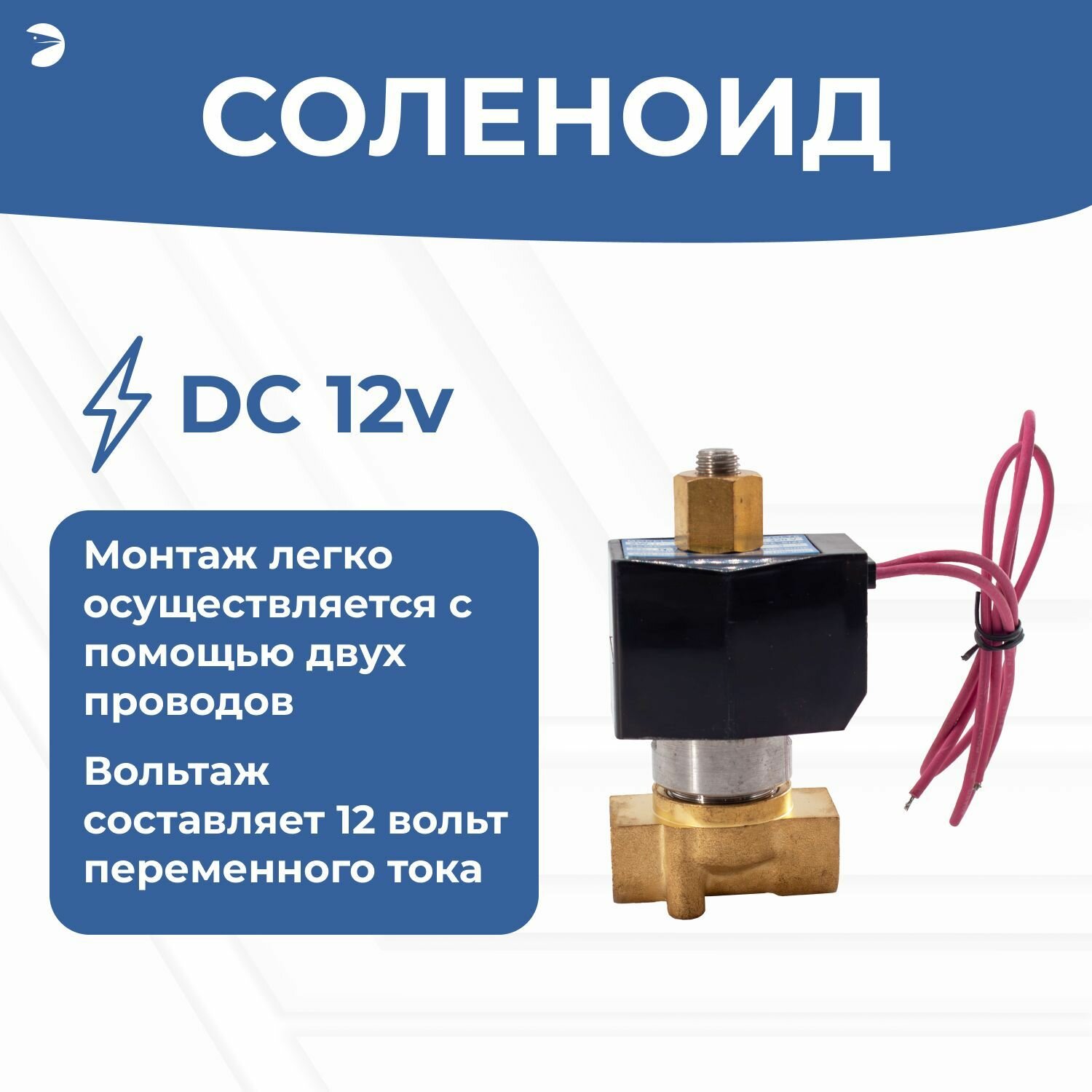Клапан электромагнитный соленоидный латунный, прямого действия, нормально закрытый 3/8" дюйма, PN10, 12DC интересное:
