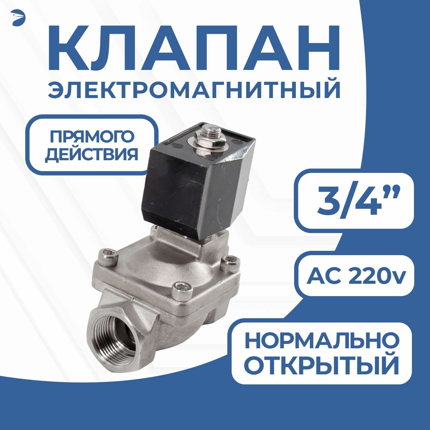 Клапан электромагнитный соленоидный нержавеющий, прямого действия, нормально открытый, 3/4" дюйма, PN10, 220AC интересное: