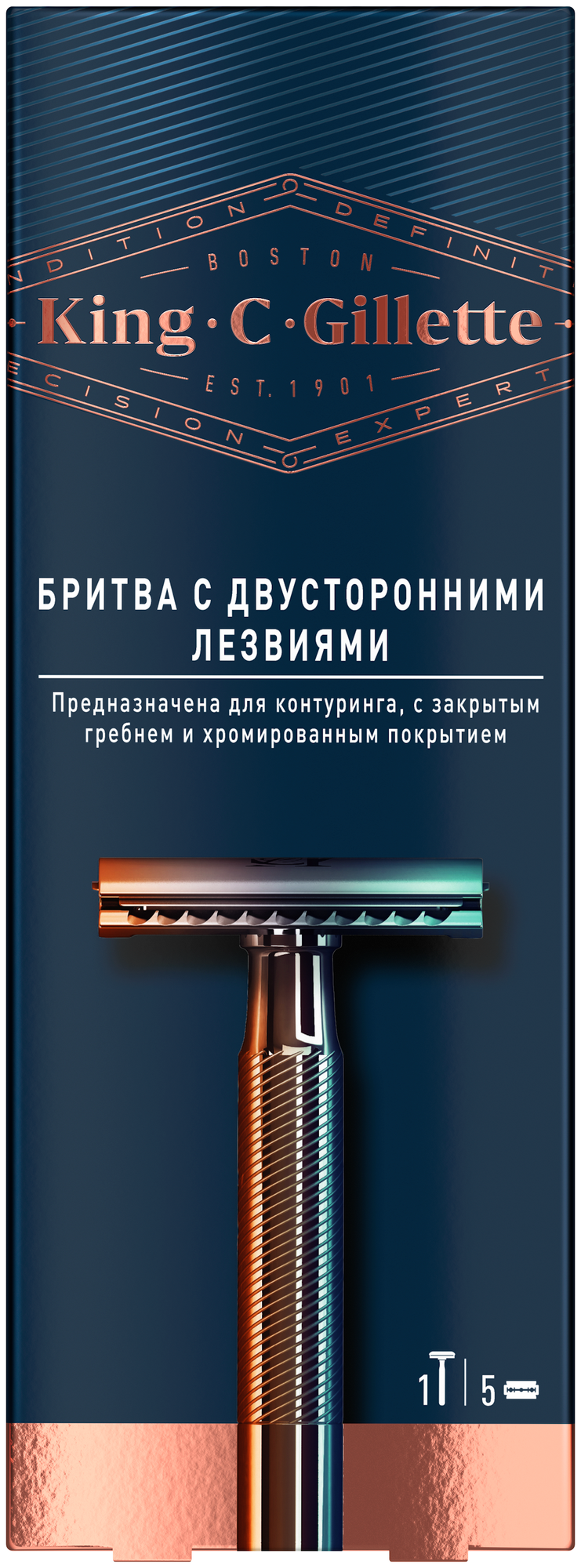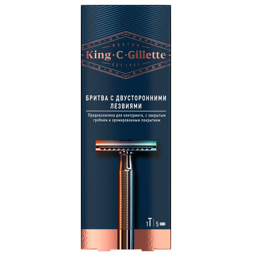 King C. Gillette King C. Т-образная бритва , -, с 1 двусторонним лезвием, с закрытым гребнем