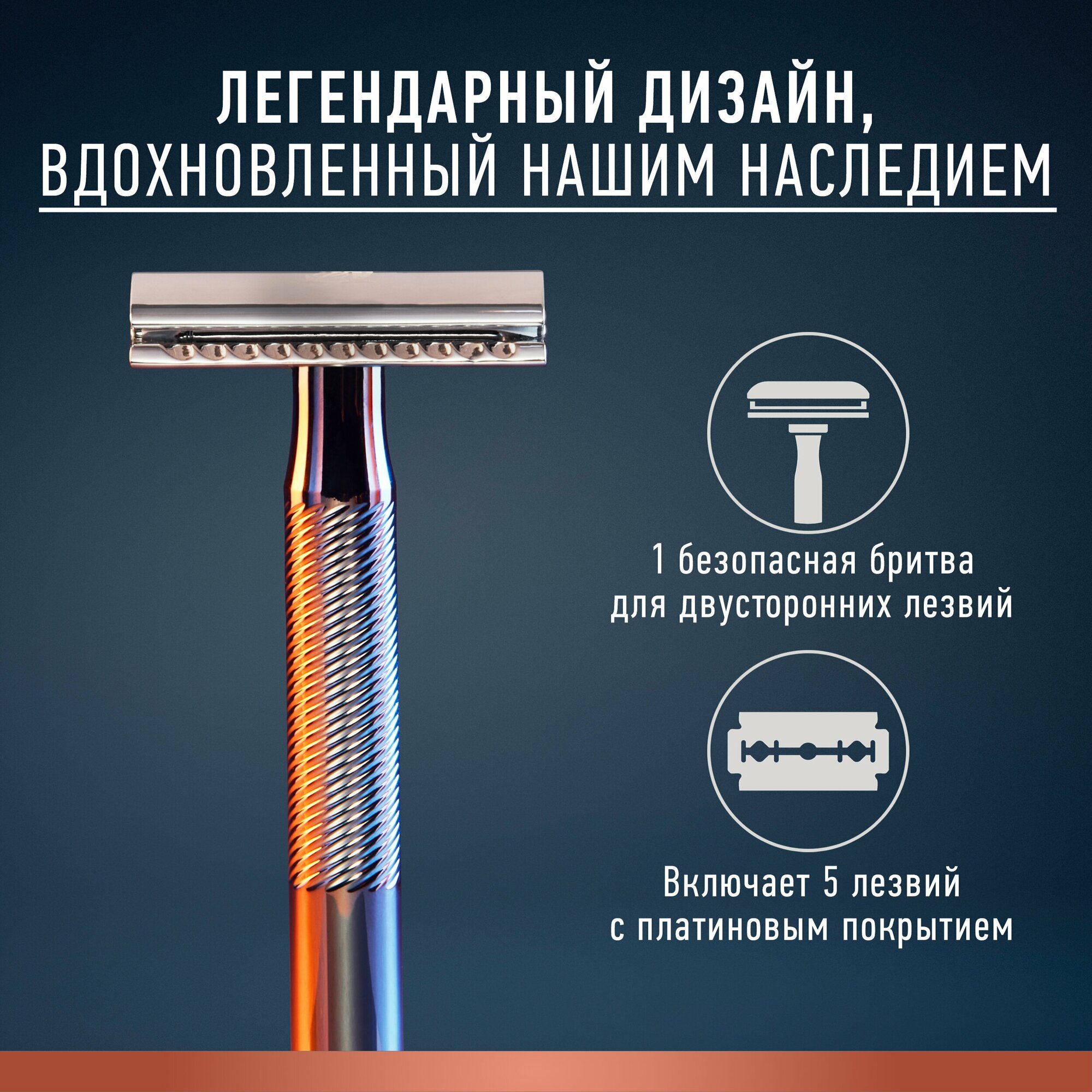 Бритва Т-образная безопасная KING C. GILLETTE, со сменными лезвиями, 5шт интересное:
