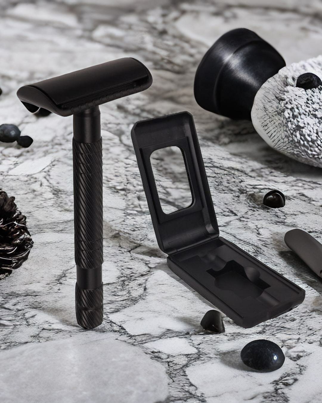 Т-образная бритва безопасная, металлическая с чехлом и лезвием интересное: