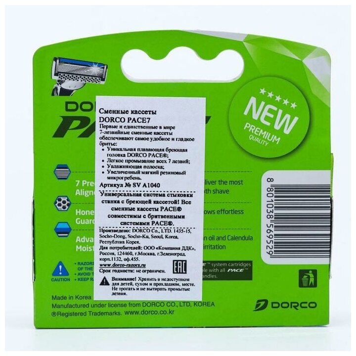 | Дополнительная информация | крепление Pace Shave от DORCO; увлажняющая полоска; микрогребни |