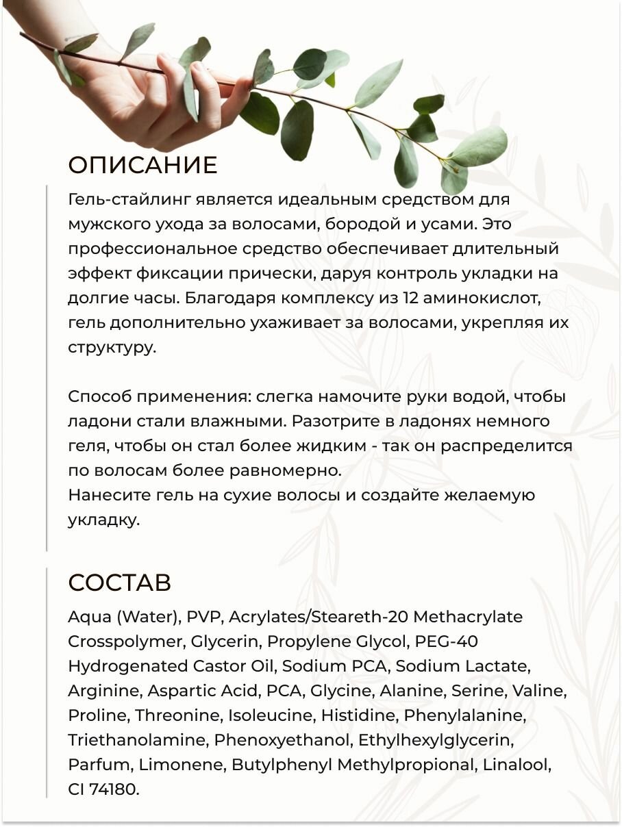 Гель-стайлинг для укладки волос, бороды и усов сильной фиксации, парфюмированный, в тубе, 75 мл интересное: