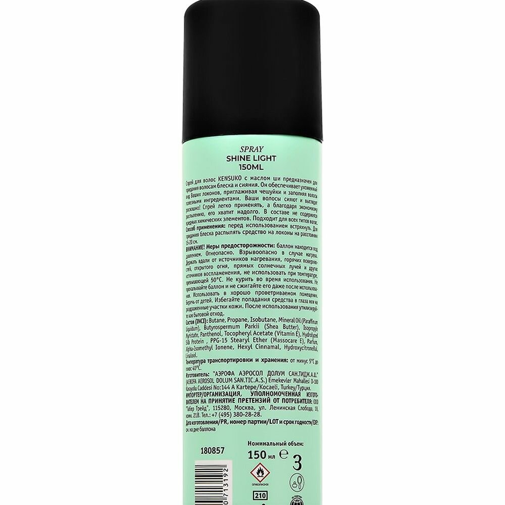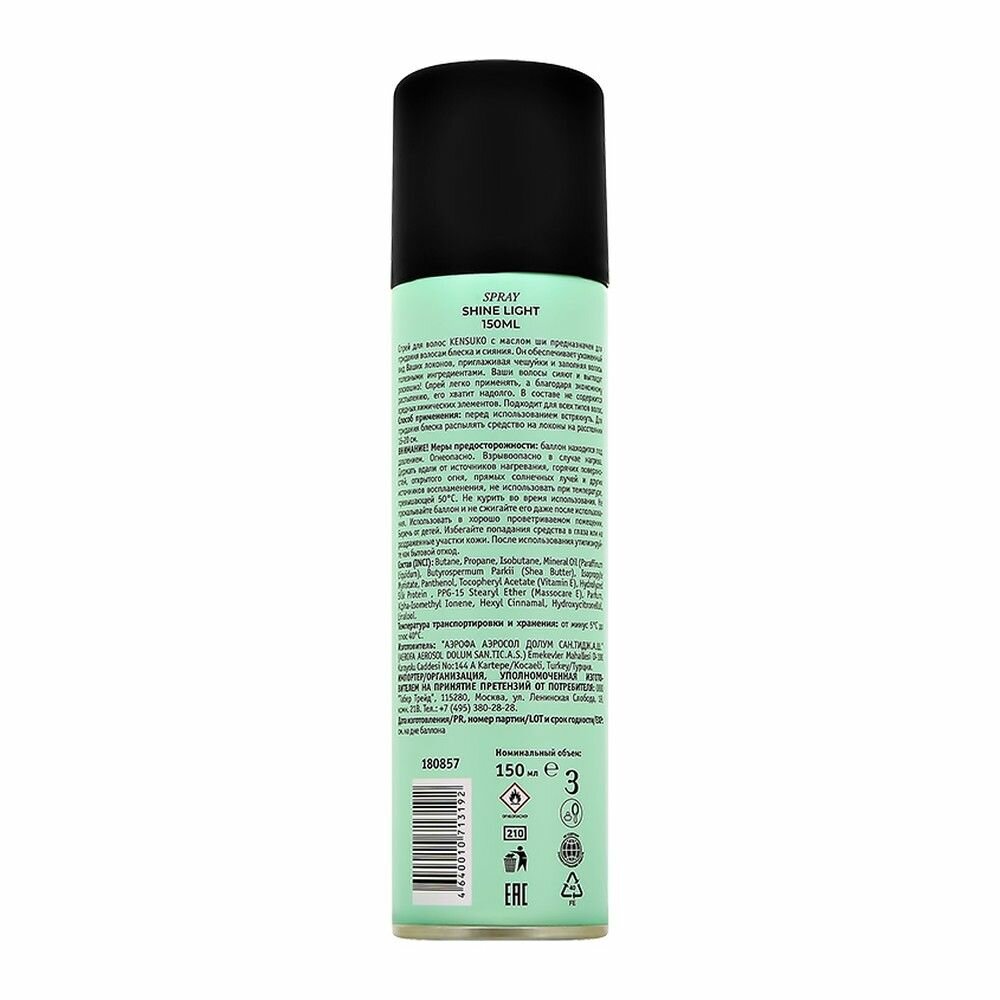 Спрей-блеск для волос KENSUKO SHINE LIGHT, 150 мл