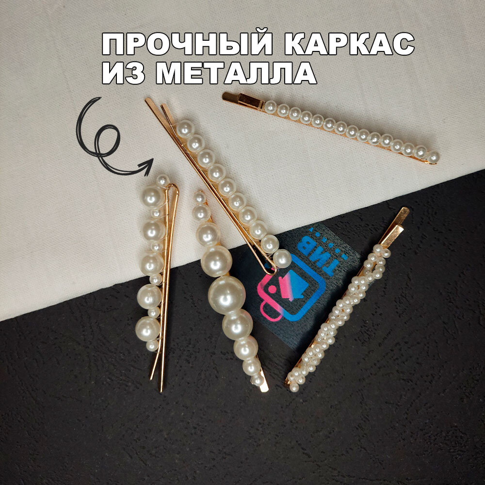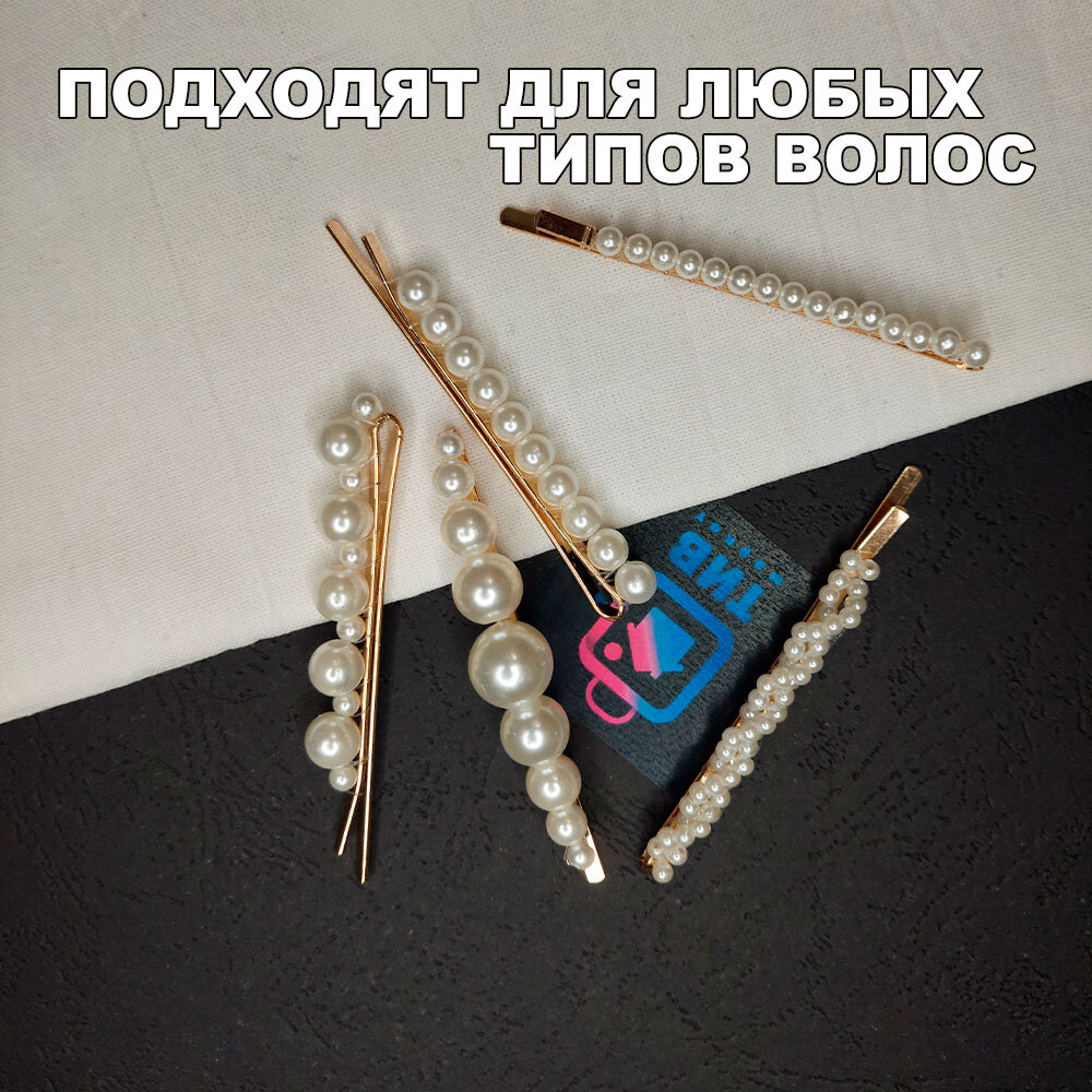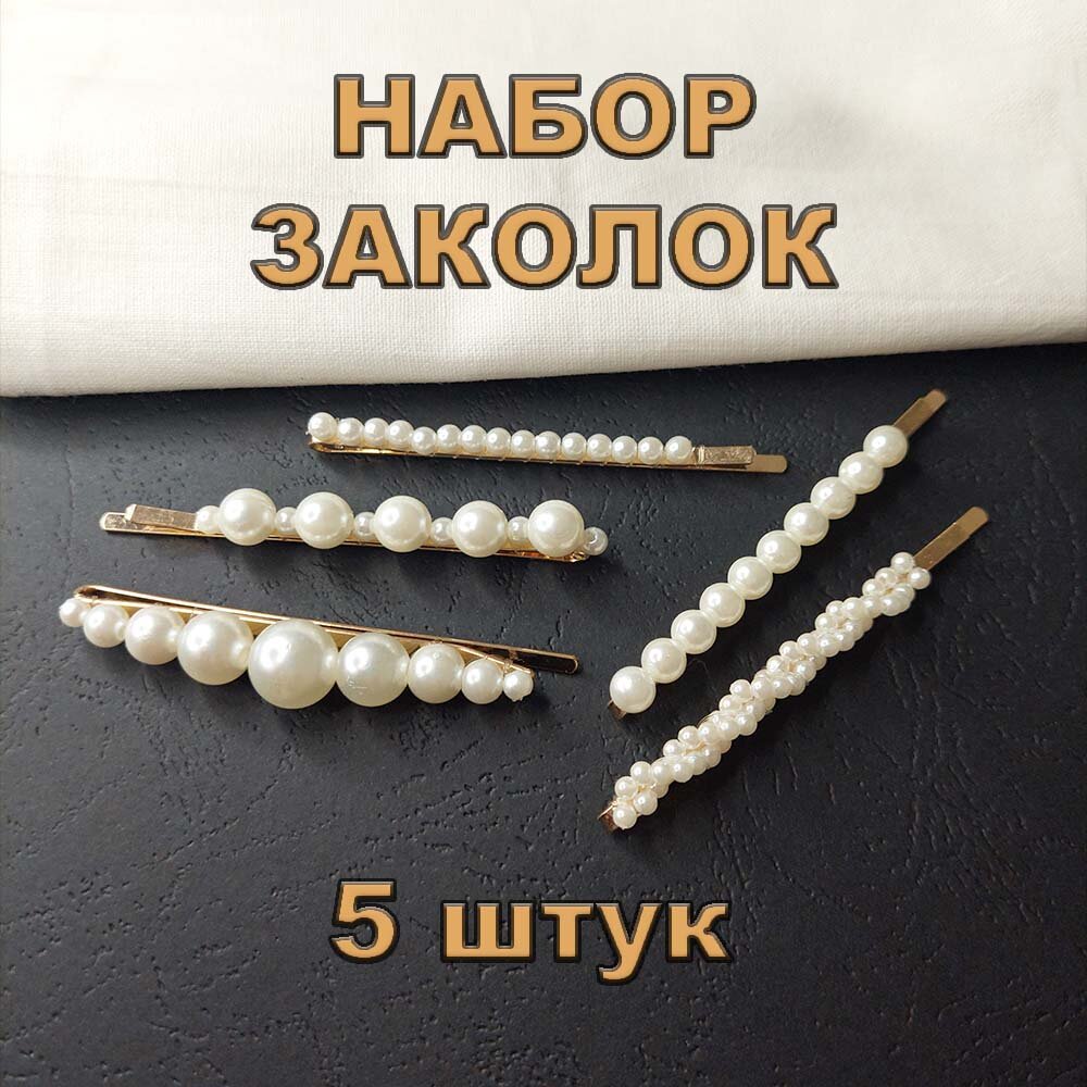 Набор заколок-невидимок с искусственным жемчугом "ТИВ Маркет" (5 шт.)