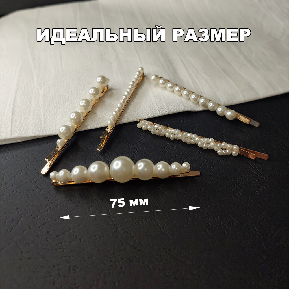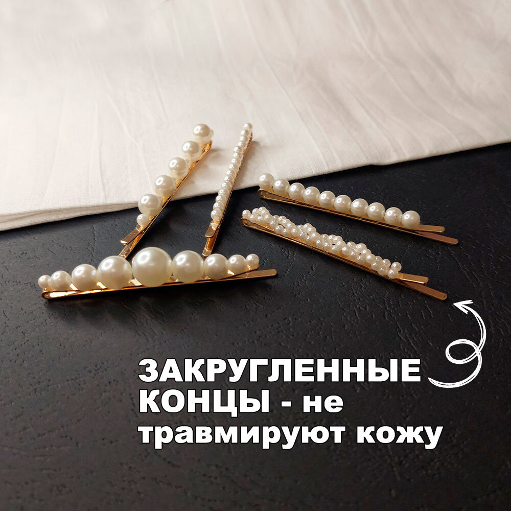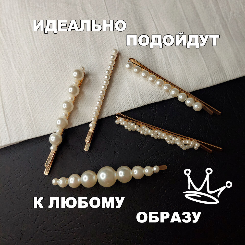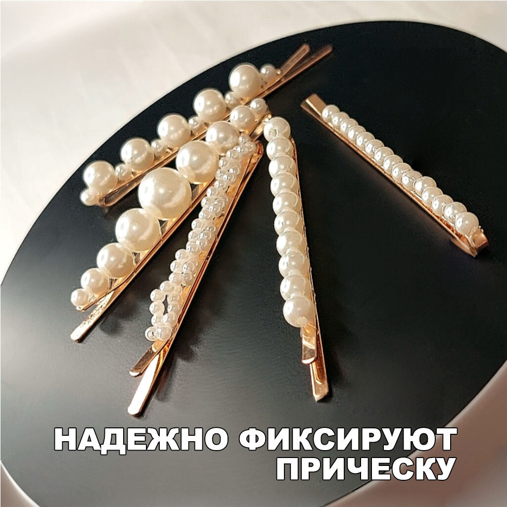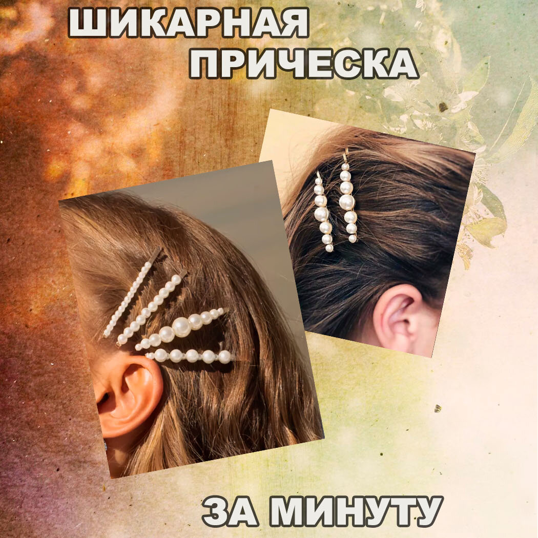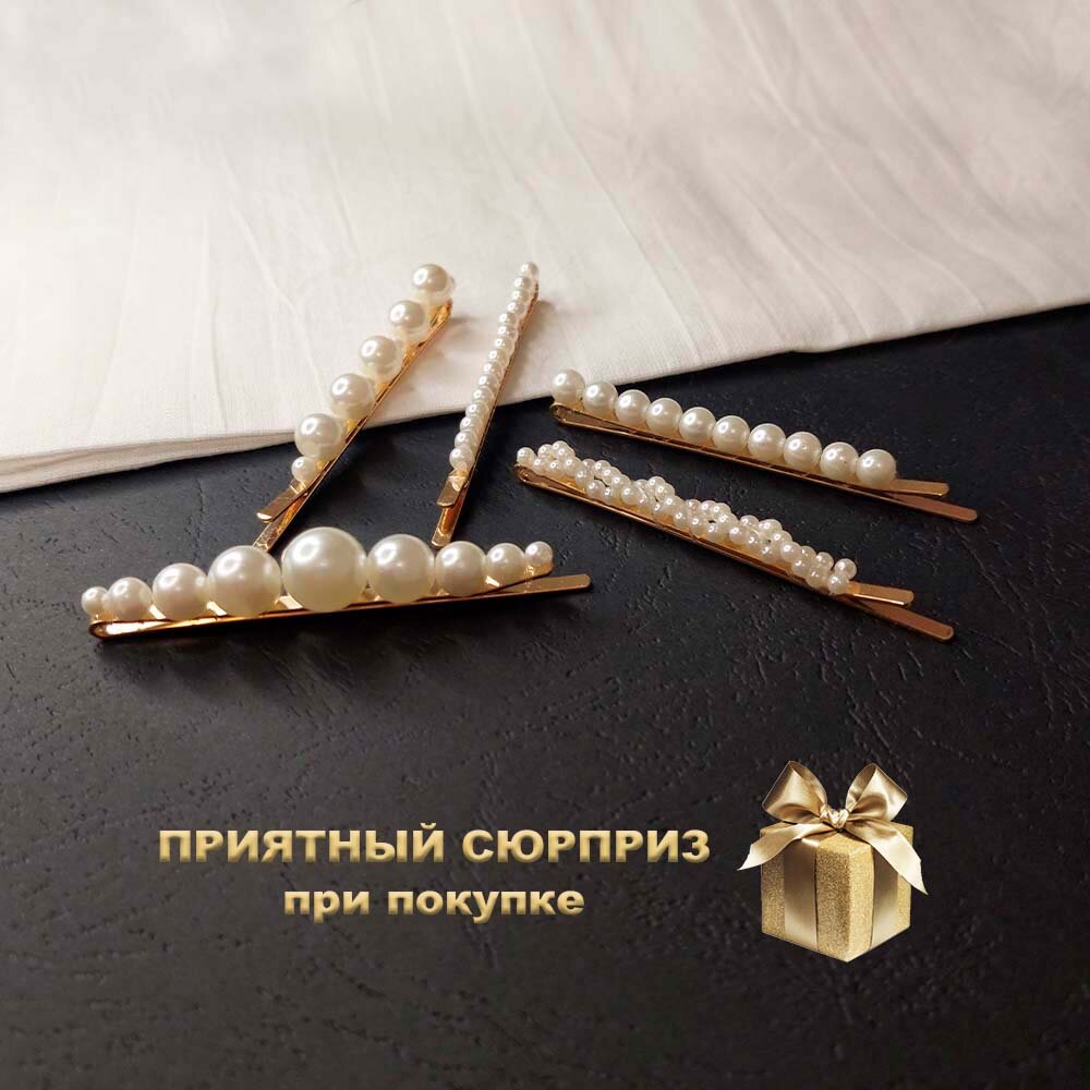 Заколки для волос с жемчугом. Набор невидимок из 5 штук золотого цвета. интересное: